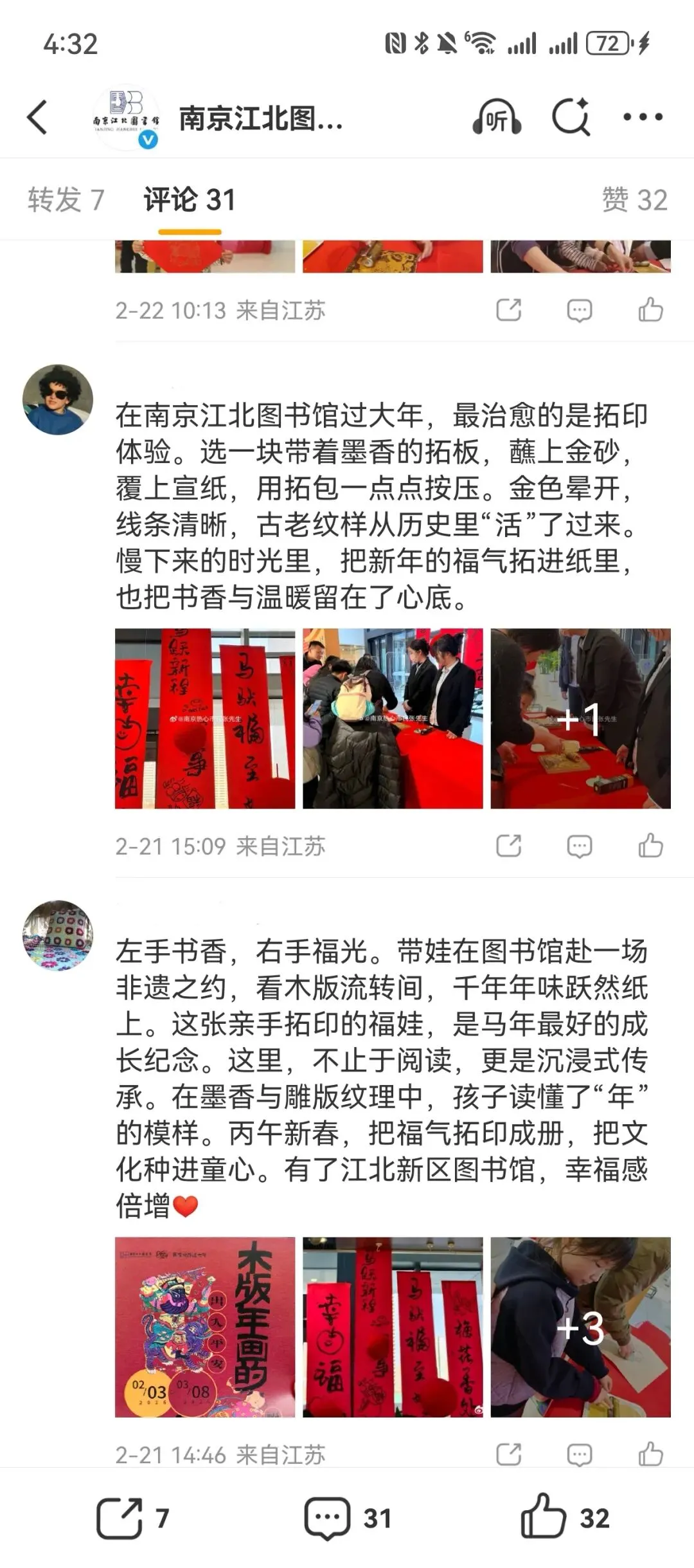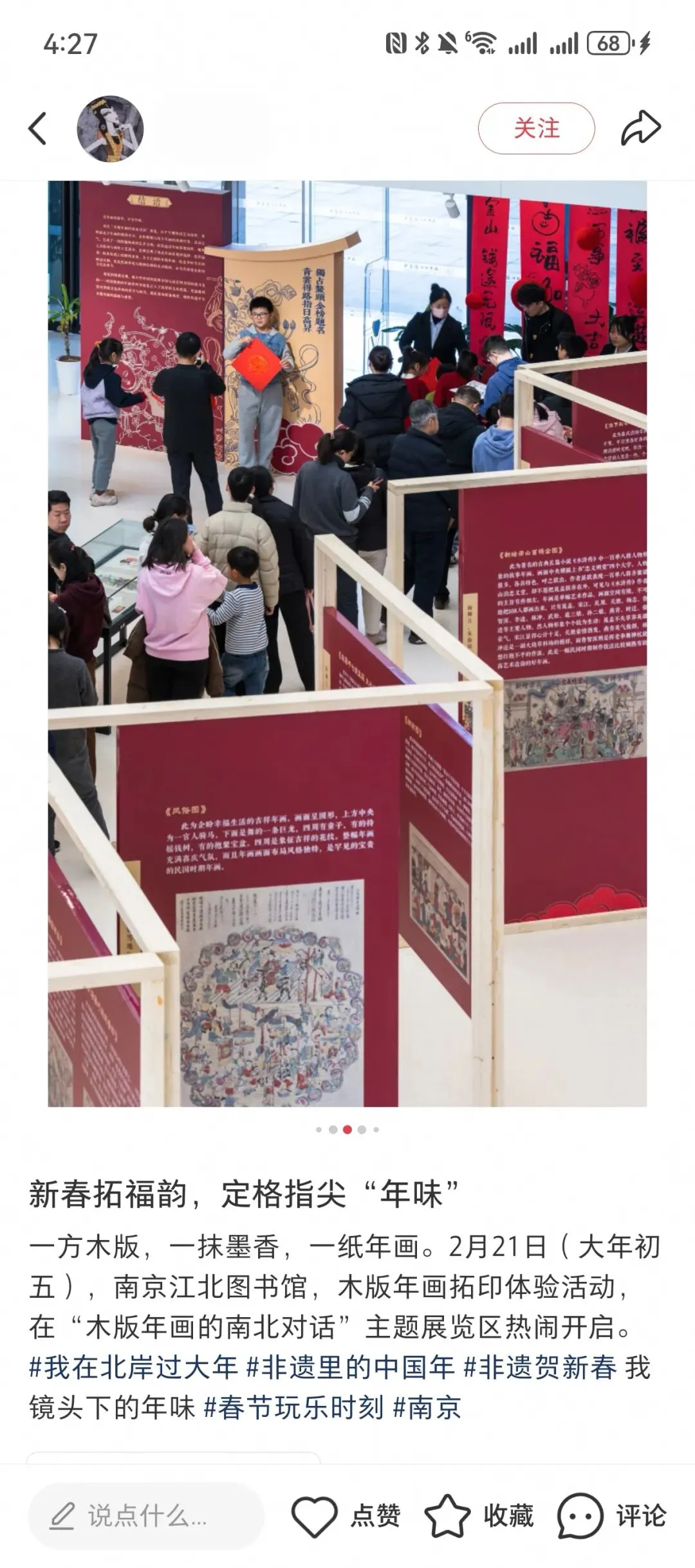 为扩大传播覆盖面,南京江北图书馆特别推出“云逛展”视频,通过抖音、视频号、小红书、微博等多平台全网推送,让无法到场的读者也能云端赏展,打破地域限制,实现线上线下同频共振。还有不少读者在社交平台自发打卡分享,称赞展览年味浓、设计巧、观赏性与趣味性兼备,成为2026年初口碑爆棚的文化打卡地。
