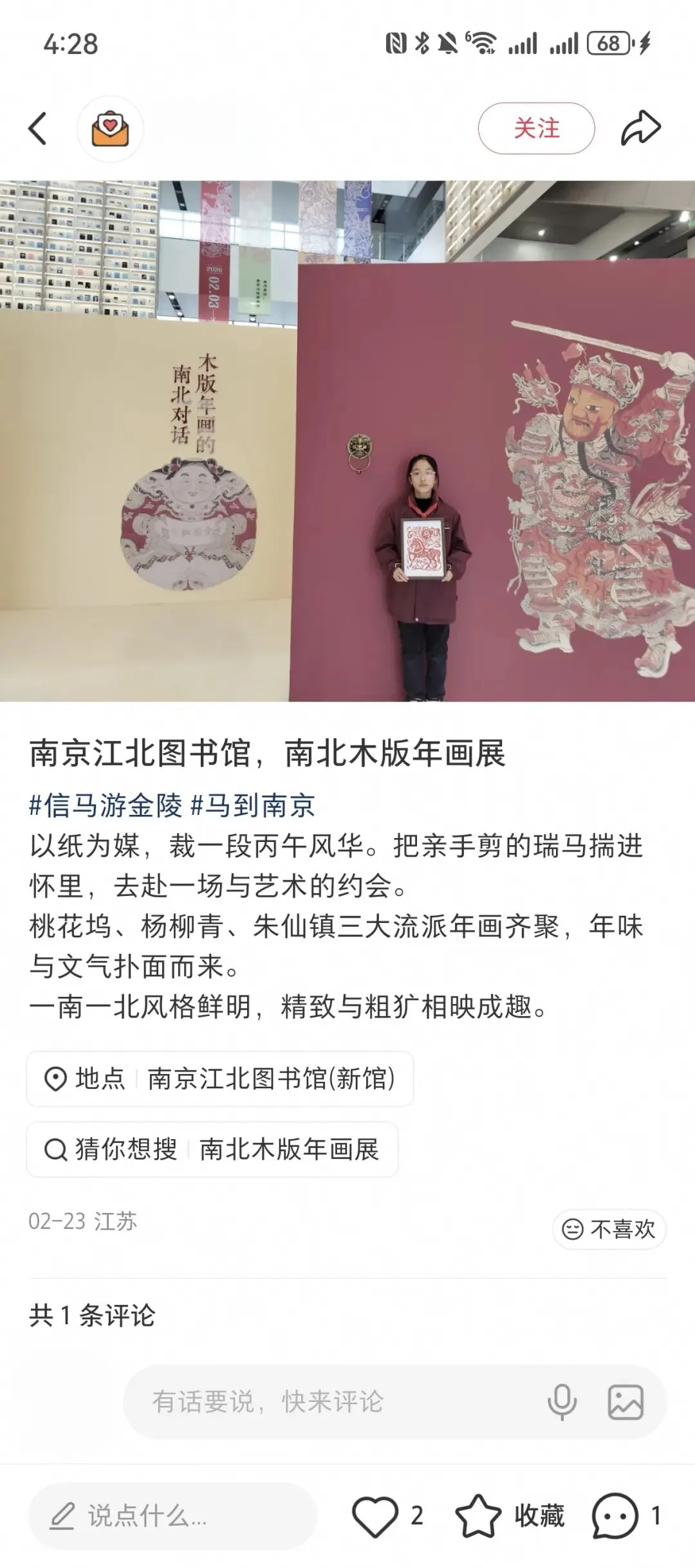从典籍文献到指尖匠心,从展厅雅境到烟火日常,从线下实景到云端共享,此次“木版年画的南北对话”主题展以创新模式搭建起传统文化与现代生活的桥梁,成效显著。未来,南京江北图书馆将继续深耕优质文化资源,打造更多兼具民俗内涵、互动体验与传播活力的特色文化活动,让悠悠书香与绵绵文脉浸润人心、薪火相传。