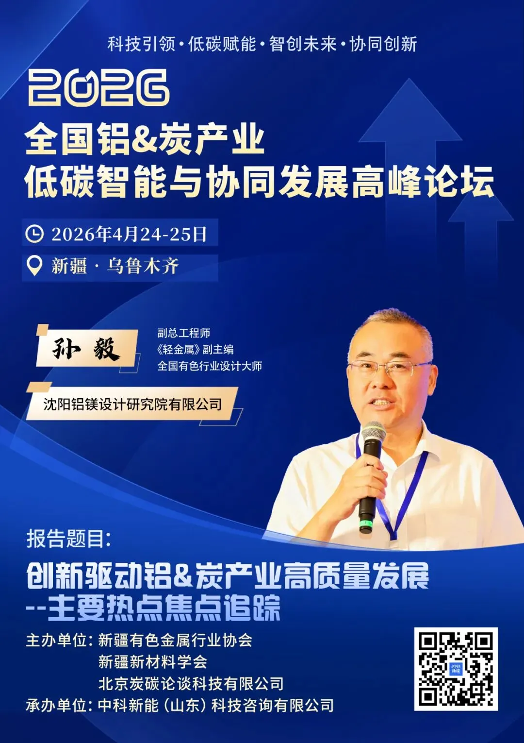 为响应《铝产业高质量发展实施方案(2025—2027年)》政策导向,破解产业协同不足、环保压力大、智能化水平不均等痛点,搭建政产学研用高端交流平台,由新疆有色金属行业协会、新疆新材料学会与北京炭碳论谈科技有限公司、《轻金属》杂志等单位联合组织,定于2026年4月24-25日在乌鲁木齐举办2026全国铝&炭产业协同与低碳智能发展高峰论坛。