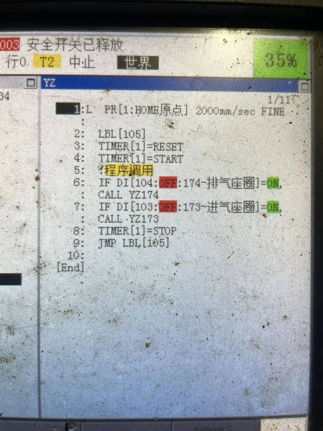 如果排气座圈信号(DI174)=0调用子程序 YZ174