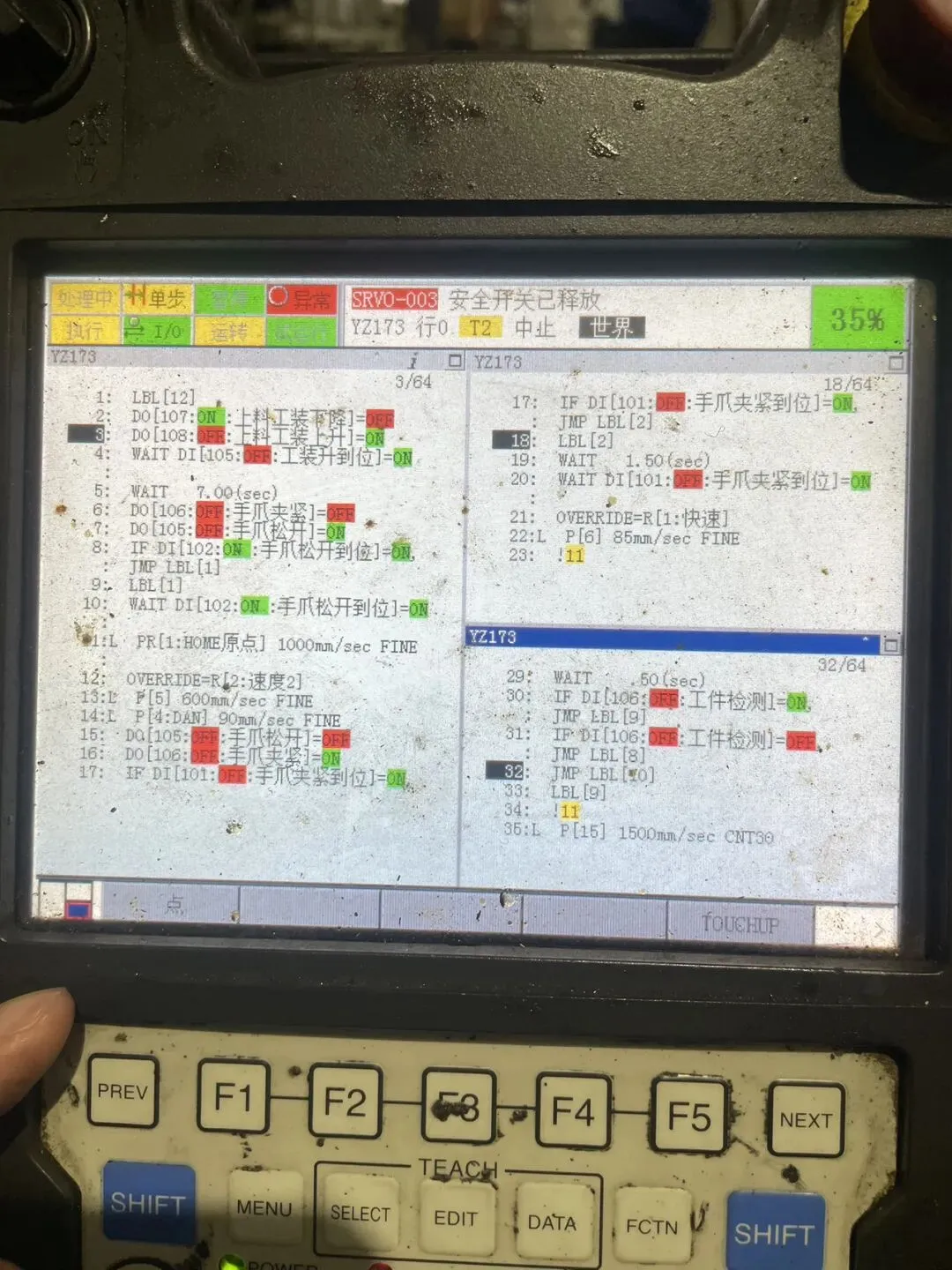 2.程序中的 DI173/DI174 信号正是用于检测座圈是否安装到位,从而触发对应的装配子程序。