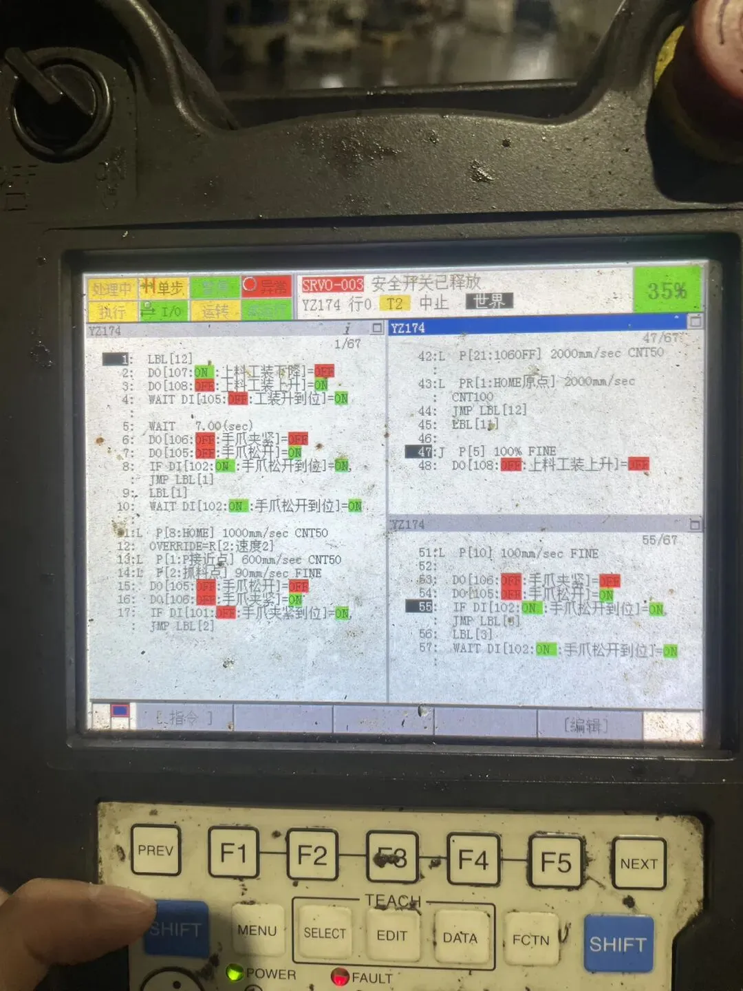 57:L P[9:高位安全点] 200mm/sec FINE ;