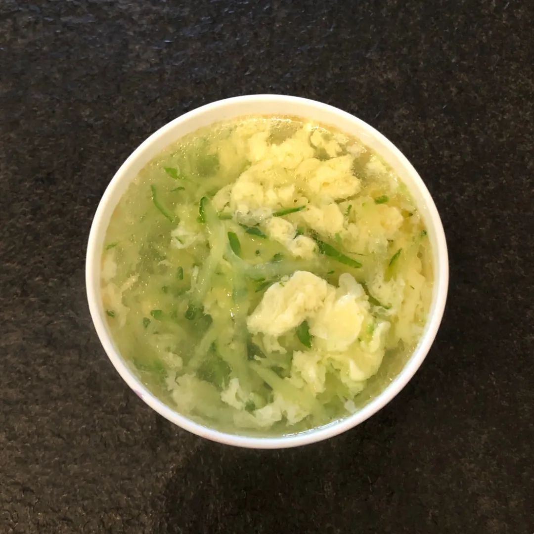 黄瓜蛋花汤:黄瓜20g、鸡蛋9g