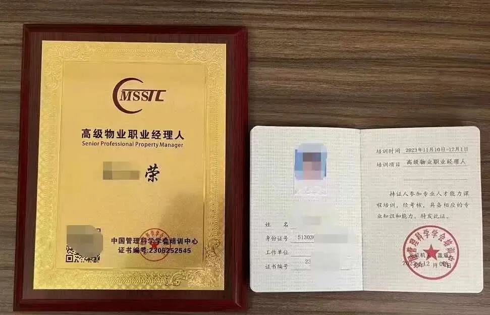 证书由中国管理科学学会培训中心(www.msstc.org.cn)颁发高级物业职业经理人证书与摆台,物业精英职业能力与身份的象征。