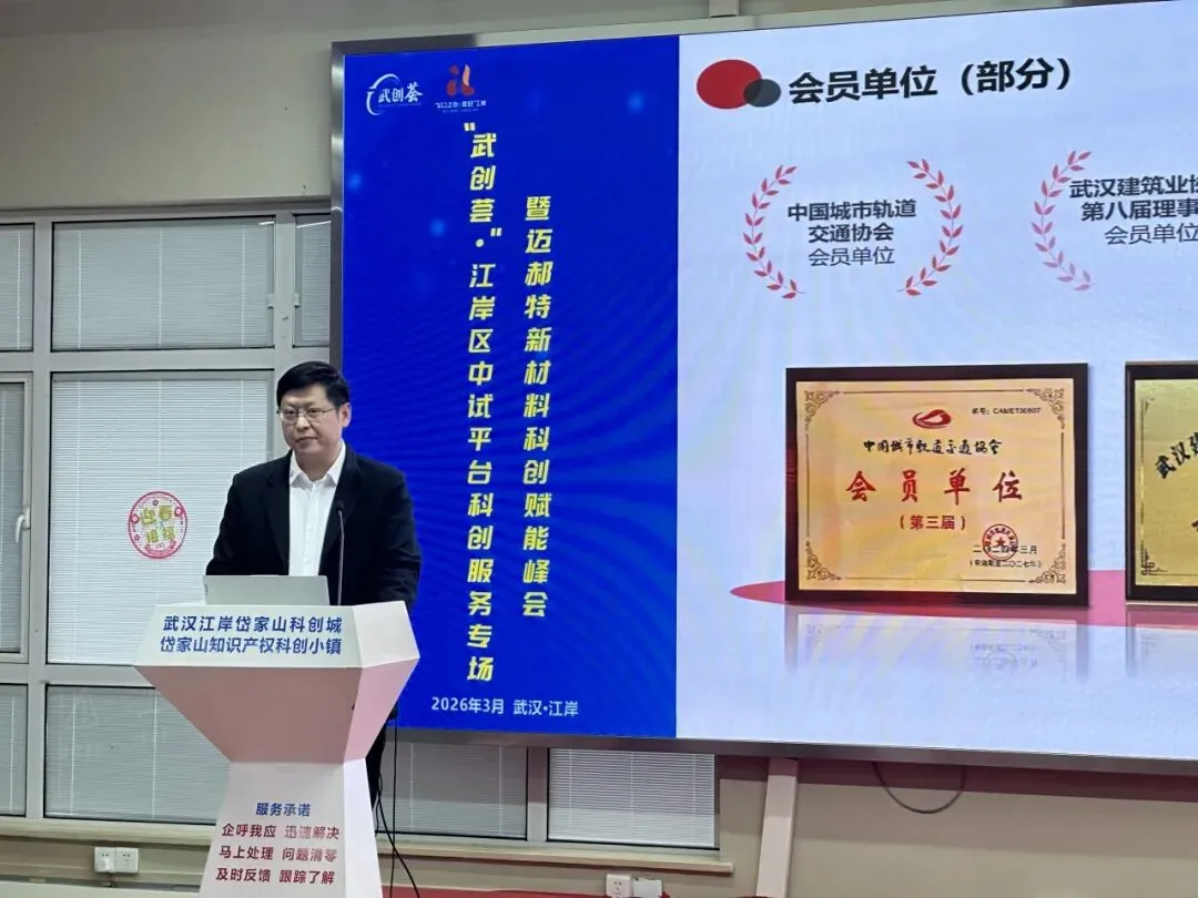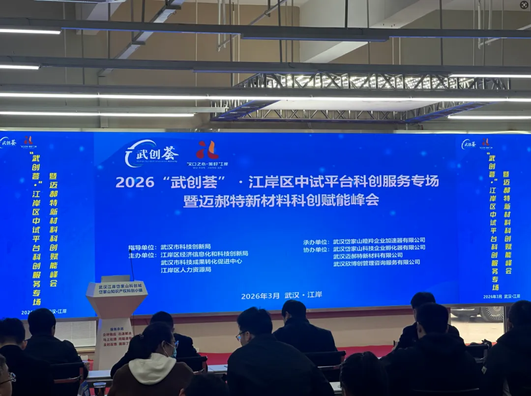 3月20日上午,2026“武创荟”·江岸区中试平台科创服务专场暨迈郝特新材料峰会在武汉岱家山科技创业园举办。本次活动由武汉市科技创新局指导,江岸区经济信息化和科技创新局、武汉市科技成果转化促进中心主办,武汉岱家山瞪羚企业加速器有限公司承办,武汉岱家山科技企业孵化器有限公司、武汉迈郝特新材料有限公司协办。政企校研金媒多方齐聚一堂,以中试平台建设为抓手,以科技成果转化为核心,共探科创赋能产业高质量发展新路径,现场成果丰硕、亮点纷呈。