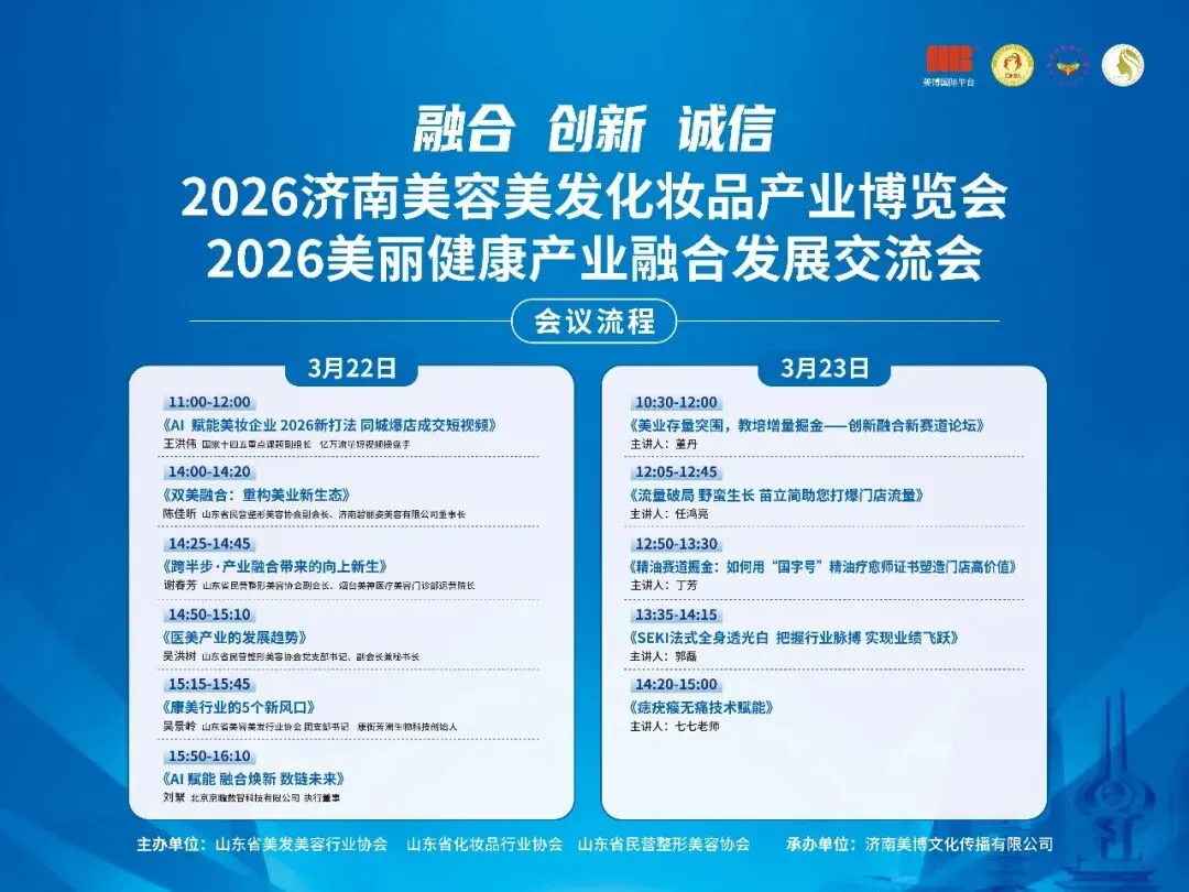 本届展会由山东美博国际文化传播有限公司主办,济南美博文化传播有限公司承办,凭借深耕美业多年的行业积淀,立足济南、辐射华北、环渤海经济圈,以"融合创新·数智赋"为核心,延续“产业整合+技术赋能+消费升级”三维发展模式,不仅是美业全产业链的一站式采购与合作平台,更成为行业趋势发布、技术交流、资源对接的“超级枢纽”,为2026年华北美业发展注入全新动能。