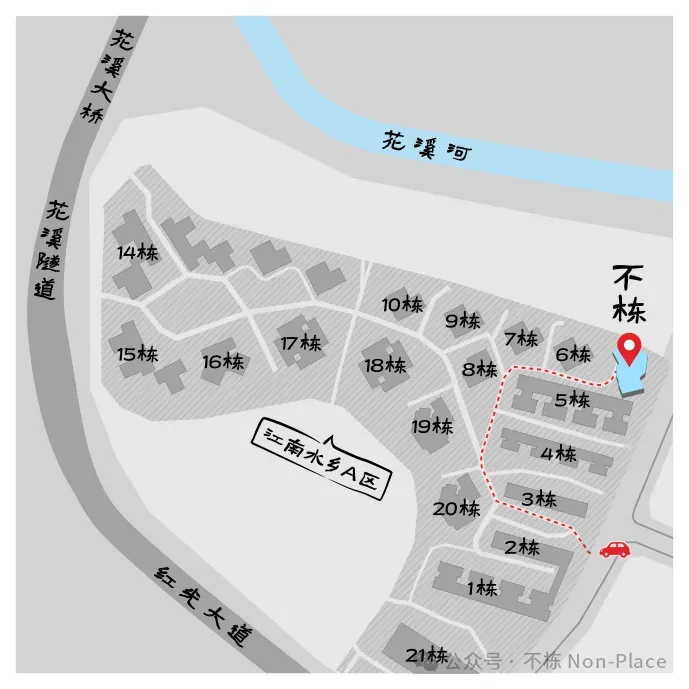 “不栋”是一栋无法被定义的楼,也是一种不断生成的空间实践。它既不是传统意义上的展览机构,也不是单纯的创作空间,而是一种位于“制度”与“居所”之间的非典型结构。在功能性建筑逻辑日益统一的城市语境中,“不栋”回应了Marc Augé 所提出的 non-place(非场所)概念——在那些被设计为通行、消费与短暂停留的空间逻辑之外,我们试图开辟出一个真实共处、缓慢生成、无法被归类的精神容器。