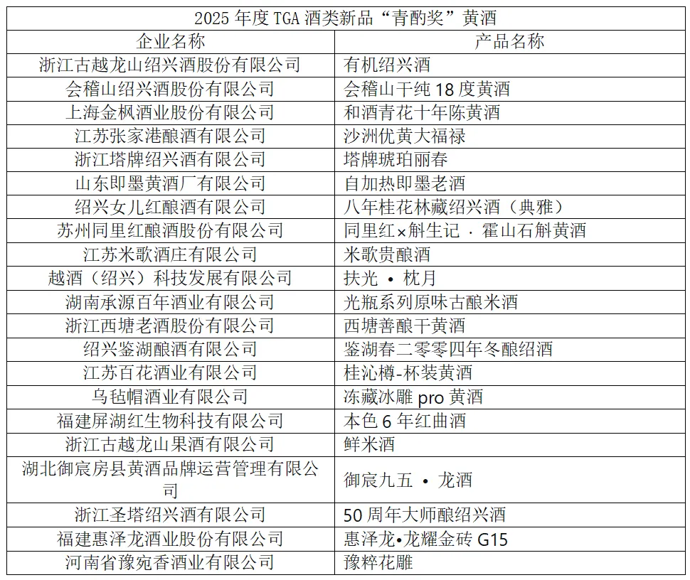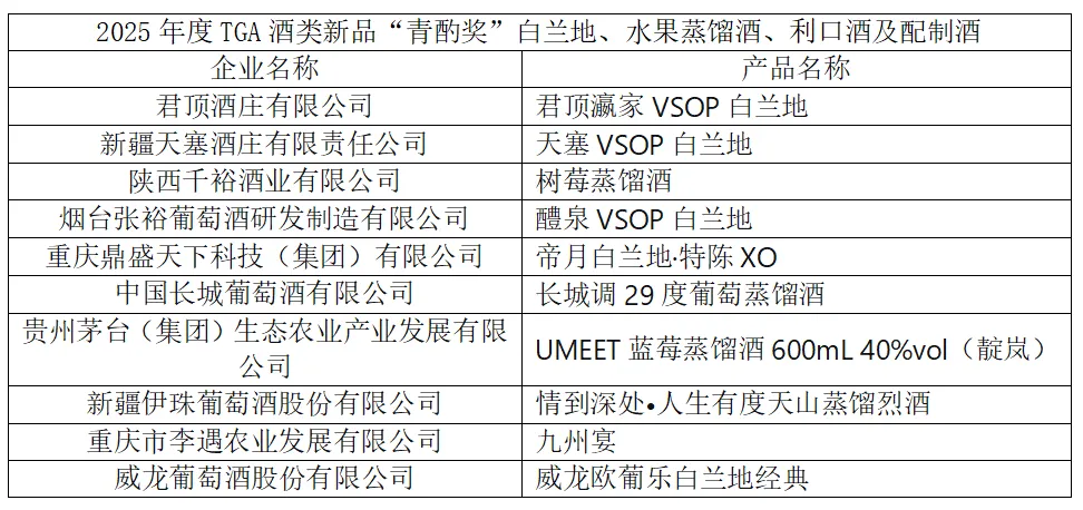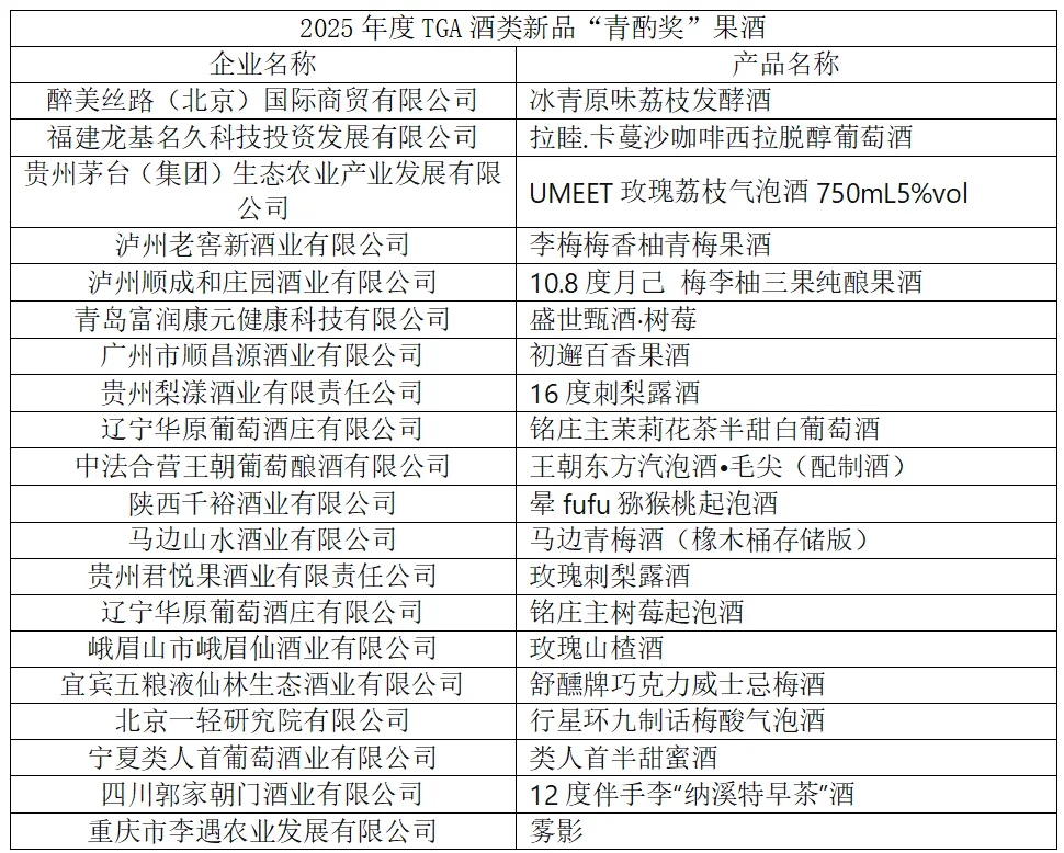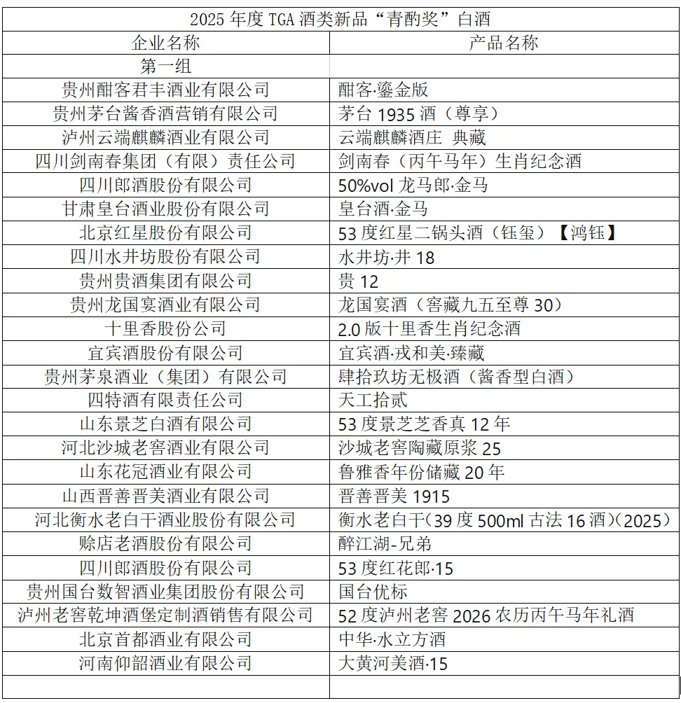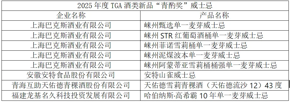 附:2025年度TGA酒类新品“青酌奖”名单