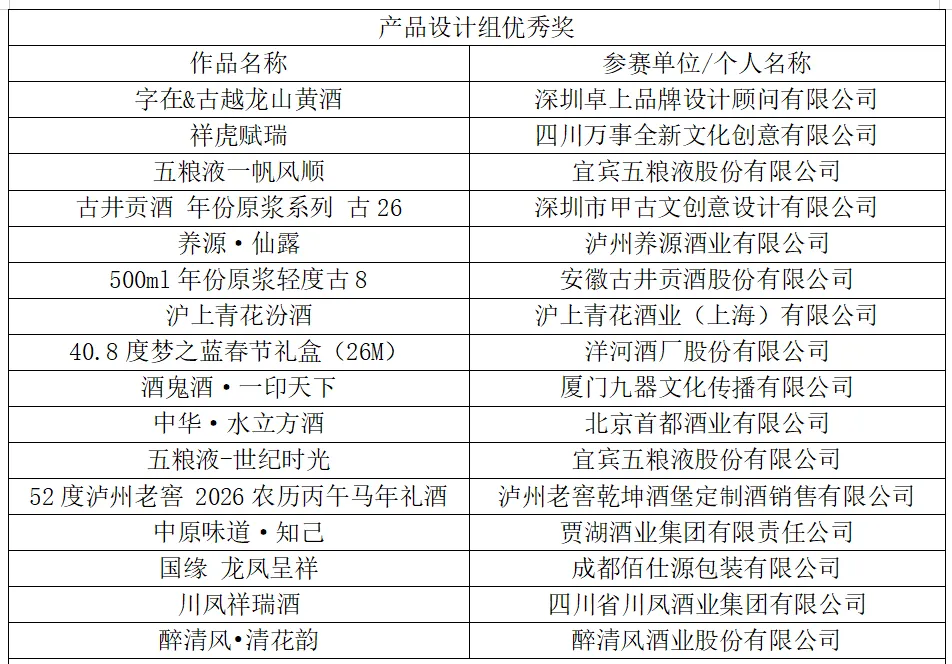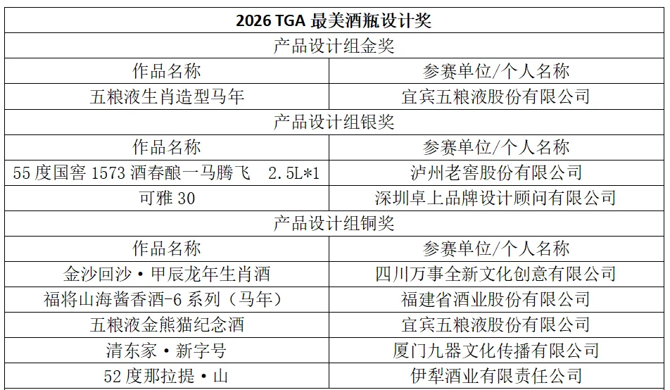 附:2026 TGA最美酒瓶设计奖名单