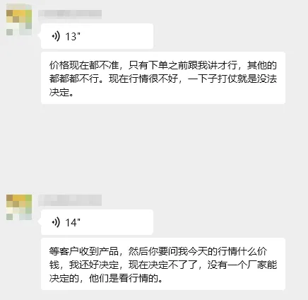 “价格现在都不准,只有下单之前跟我讲才行,其他的都不行。