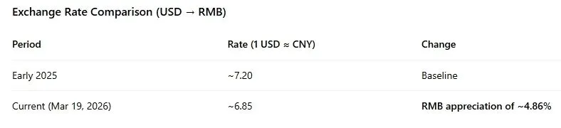 2.Exchange Rate (USD/RMB) Impact: The RMB has strengthened against the USD, reducing the value of our USD receipts.