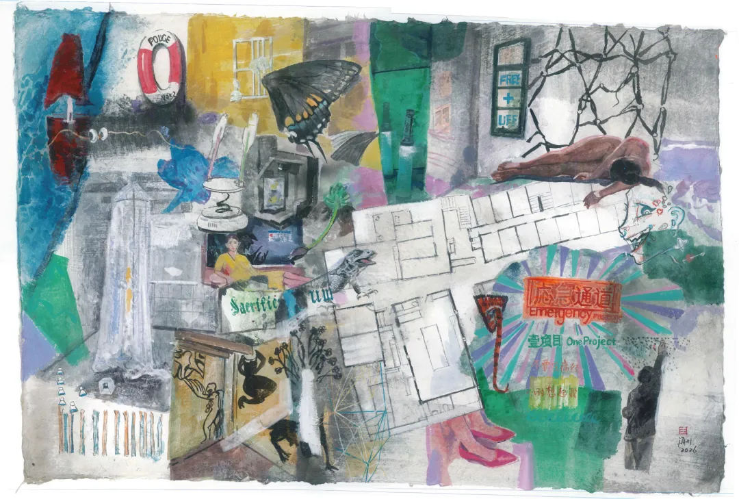 在我对“应急通道”展览的理解中,展览不仅是作品的呈现,更是一种对身处环境的探测与回 应。它并不提供答案,而是在效率至上与进步主义逻辑之下,重新审视艺术创作的动机与生 命力。因此我们摒弃既有的,由外部世界带来的制度和美学框架。重返一个人最初走向艺术 的冲动,它或许并非源于身份、议题,甚至不是为了艺术本身,而是一种原始的、生理性的 表达欲望。