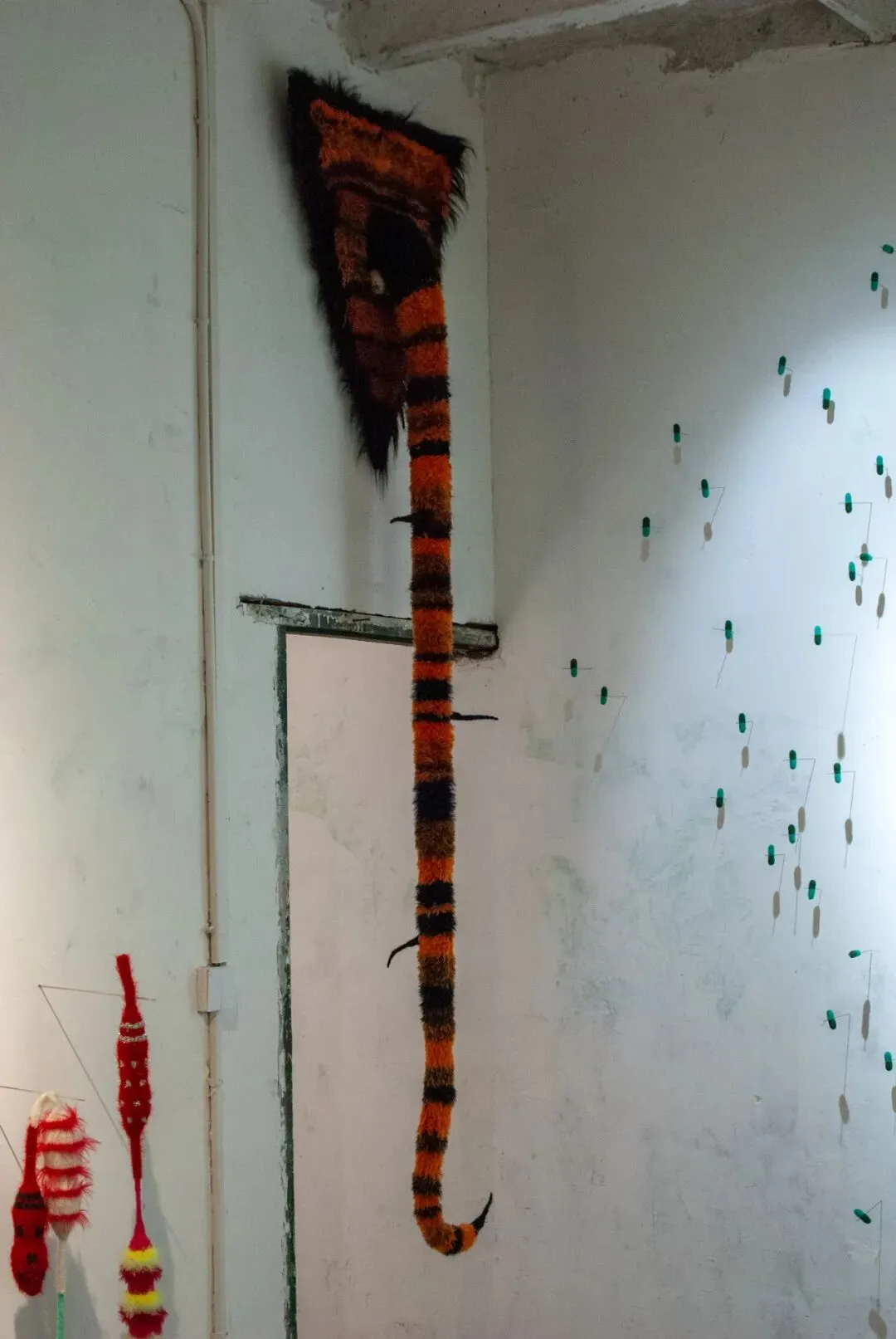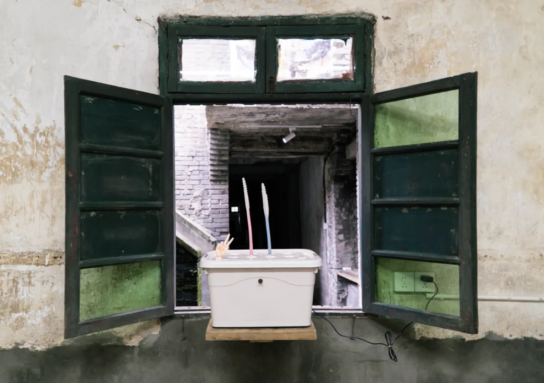 以“应急通道”为名的展览,把长期在此生活的创作者重新召回初态的现场。食堂、厨房、走廊、房间、转角、楼梯下的暗角是 旧功能留下的秩序残骸,它们以老迈、潮湿与重量对作品施压,拒绝被驯化为氛围或光滑背景;它们迫使创作作出同样 具体的回应:如何进入,如何落脚,如何在不抹平这些限制的前提下让形式成立。创作者不得不 承认:这处空间并不服务于展示,相反,它是一种阻力,是一位对抗性的共同作者。