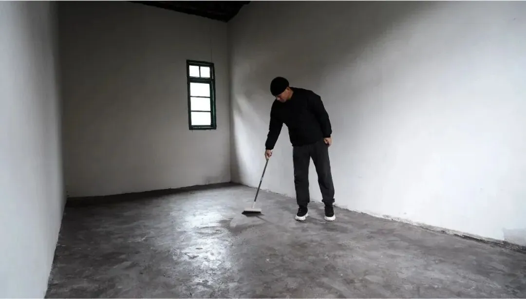一年持续性行为,闲置空房间、身体、灰尘、扫把、水、笔