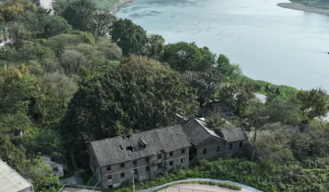 重庆北碚,东阳街道,滨江公园。入口泊车,循步道而行。初不见其端,草木夹路,江畔湿气袭人;街坊往来,或健身,或徐行,或闲坐谈笑者众。复行数百步,忽于左侧丛莽间见一曲径,遂入。曲折十余步,豁然得一隅院落:数栋旧楼,颓然如圮,围成小院一处,是为“应急通道”之入口。
