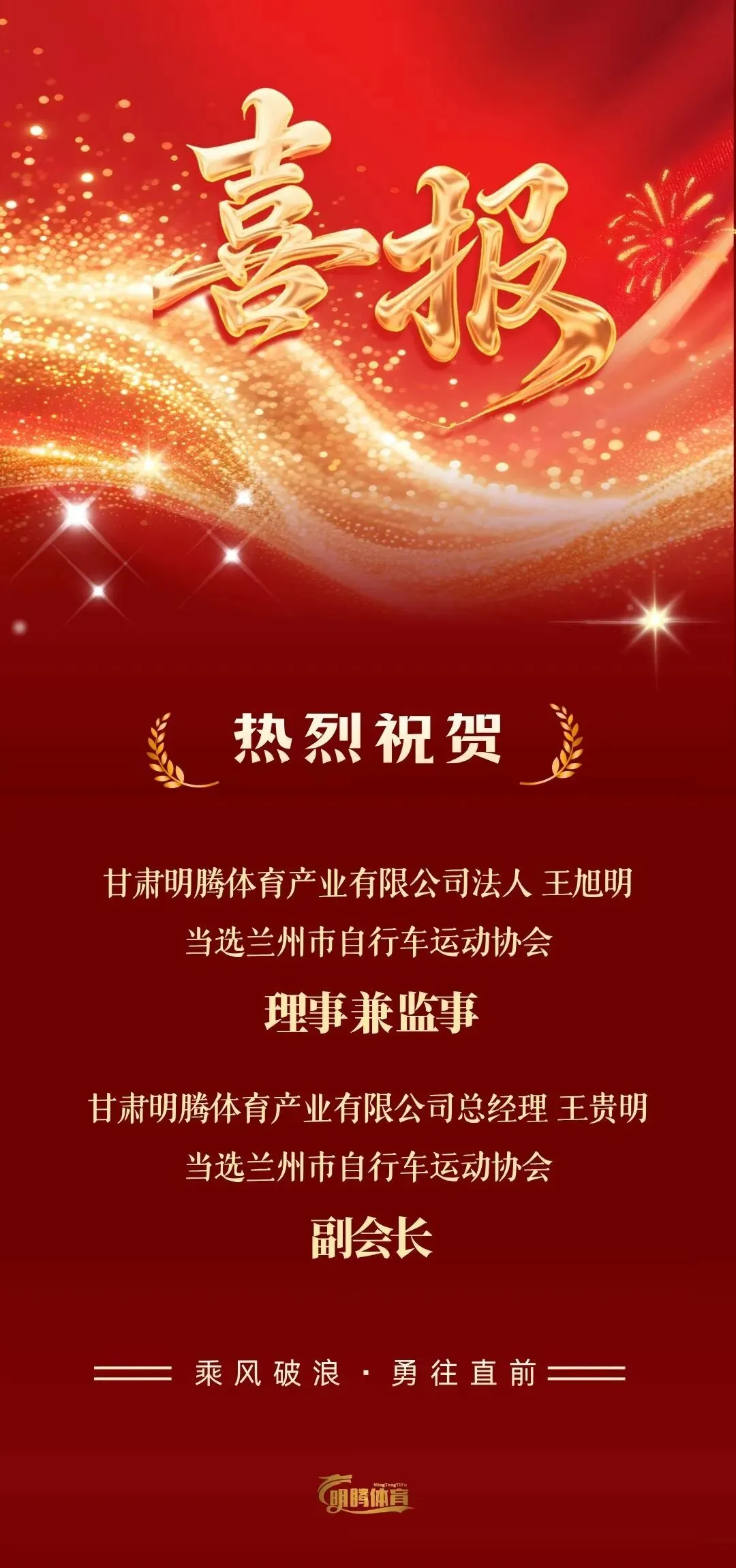 此次当选,既是行业协会与各界同仁对王旭明、王贵明两位负责人专业能力的高度肯定,也是对明腾体育综合实力、社会责任与发展潜力的充分认可。未来,明腾体育将以更高标准履行行业职责,积极参与协会建设,助力规范行业发展、整合产业资源、推动全民健身与体育产业深度融合,为甘肃体育强省会建设贡献明腾力量。