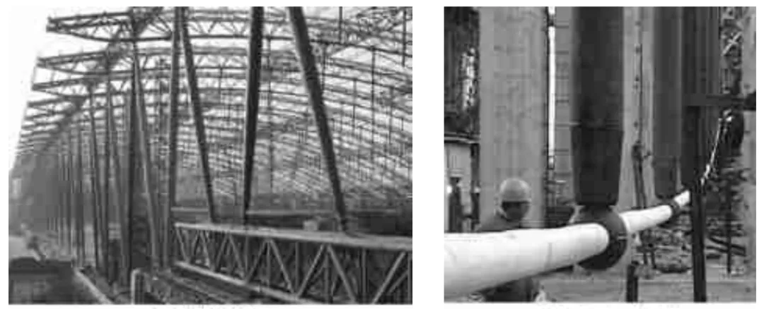 弦支桁架前端人字型摇摆柱