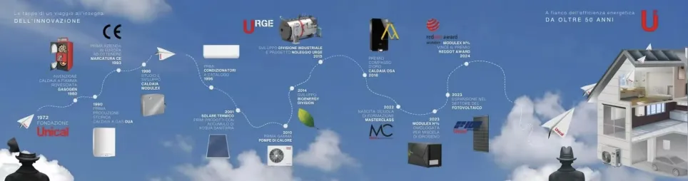 Unical AG S.p.A 成立于1972年,是意大利供大功率锅炉市场的领导者,欧洲顶尖暖通企业之一。专注于设计生产全系列暖通产品。公司以技术创新为核心(年收入5%投入研发,拥有50+专利),在意大利设有四大自动化生产基地,产品行销全球。始终致力于提供更舒适、安全、节能、环保的解决方案。