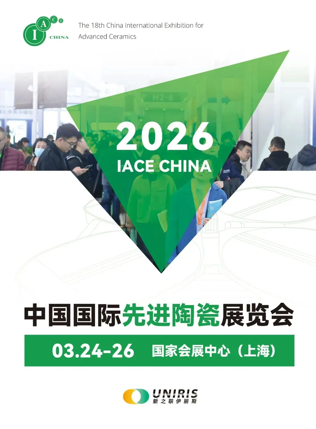 中国国际先进陶瓷展览会(IACE CHINA)历经十七载精耕细作,已发展成为全球规格最高、产业链覆盖最全的行业旗舰盛会。2026年度盛会定档于3月24-26日,将在国家会展中心(上海)以55,000+㎡的宏大规模全新启幕,汇聚海内外1,000余家中外知名企业,打造全球先进陶瓷领域的"创新策源地"与"商贸枢纽站",专业观众预计突破80,000人次,将为您打开万亿级市场的战略窗口!