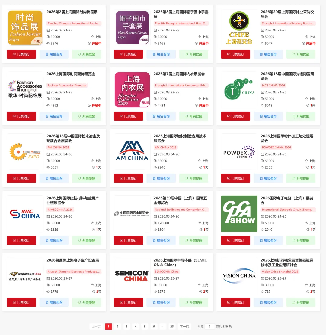 关注【展会全知道】微信公众号,在聊天对话框内回复【上海】获取上海近期最新展会信息、展位咨询预约入口
