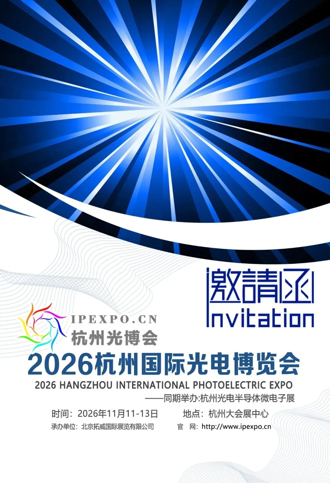 11月11-13日,2026杭州国际光电博览会将在杭州大会展中心正式举行,诚挚邀请您来参观。