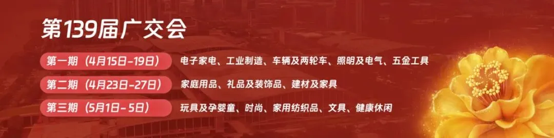 第139届中国进出口商品交易会(广交会)将于2026年4月15日在广州琶洲展馆开幕,展期分为三期,展览总面积达155万平方米,设置7.55万个展位,吸引3.2万多家企业参展。