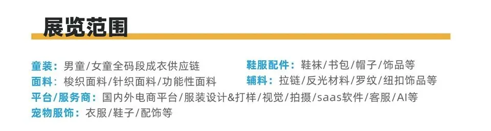 ? 参展范围货源类:日用百货、家居家电、美妆个护、母婴玩具、3C 电子、汽摩配件等服务类:跨境平台、代运营、物流、海外仓、支付、营销、财税等