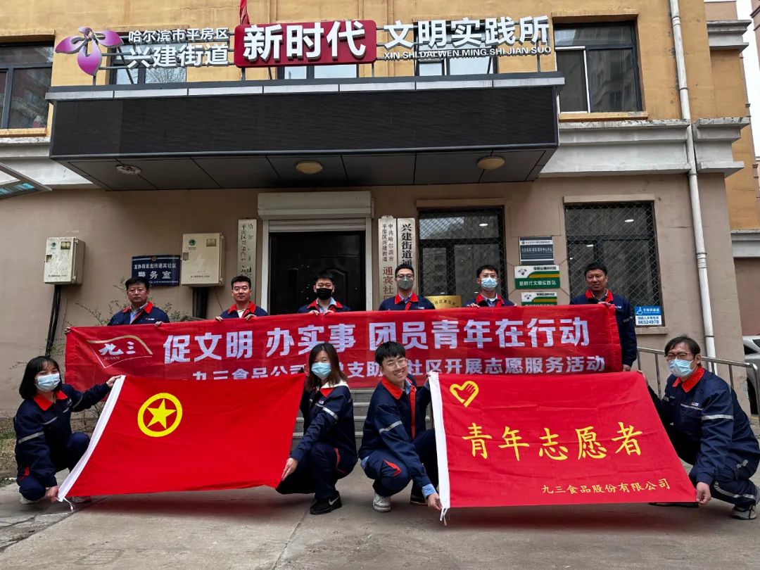 在五四青年节到来之际,为推进学习贯彻习近平新时代中国特色社会主义思想主题教育在青年工作中走深走实,5月4日上午9时,九三食品公司团总支组织开展“促文明 办实事 团员青年在行动” 助力社区志愿服务活动,10余名团员青年与哈尔滨市平房区兴建街道通宾社区工作人员组成志愿者团队,共同参与社区卫生大清扫活动,助力哈市文明城市创建工作,为居民营造更加洁净、美丽的居住环境。