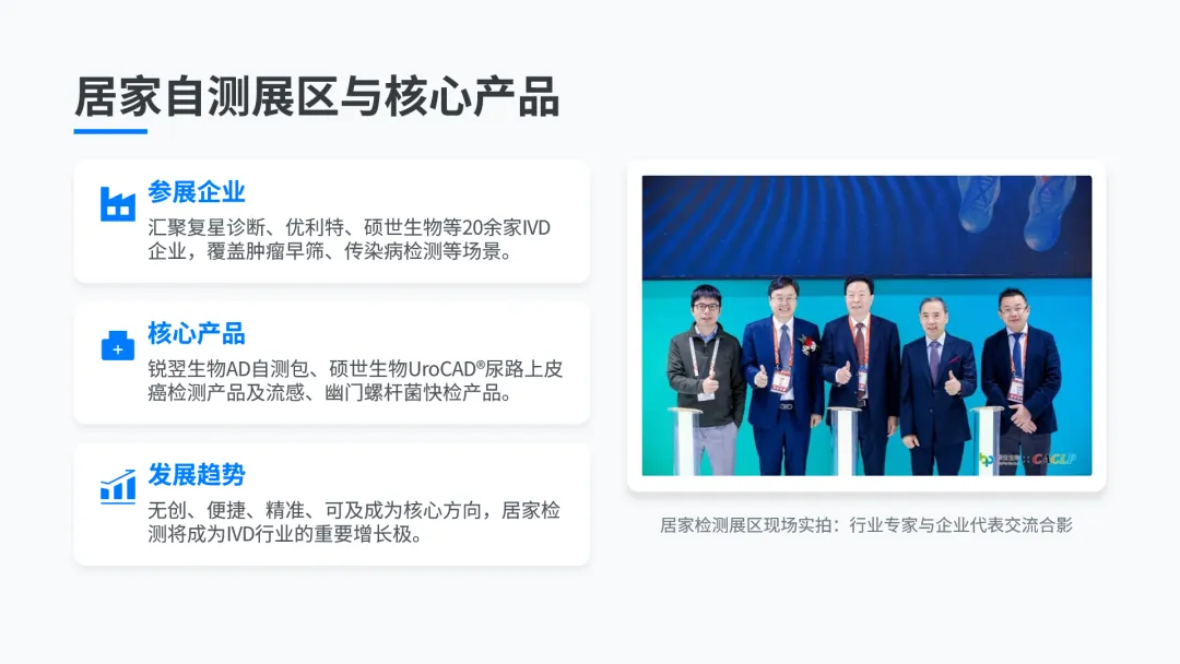 本次CACLP首次设置独立的居家检测展区,标志着居家检测赛道从行业概念走向规模化落地的新阶段,成为IVD行业的重要新兴增长极。