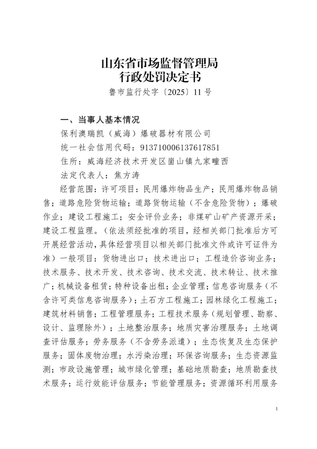 附件:山东省市场监督管理局行政处罚决定书(鲁市监行处字〔2025〕2—11号)