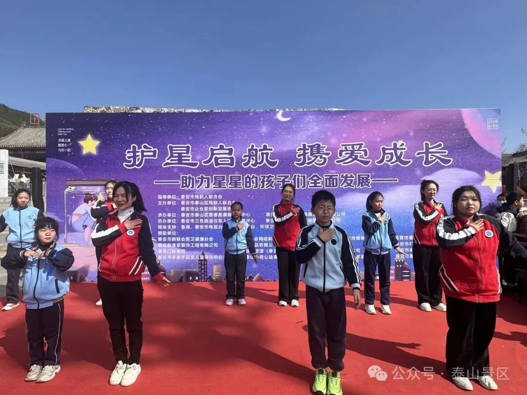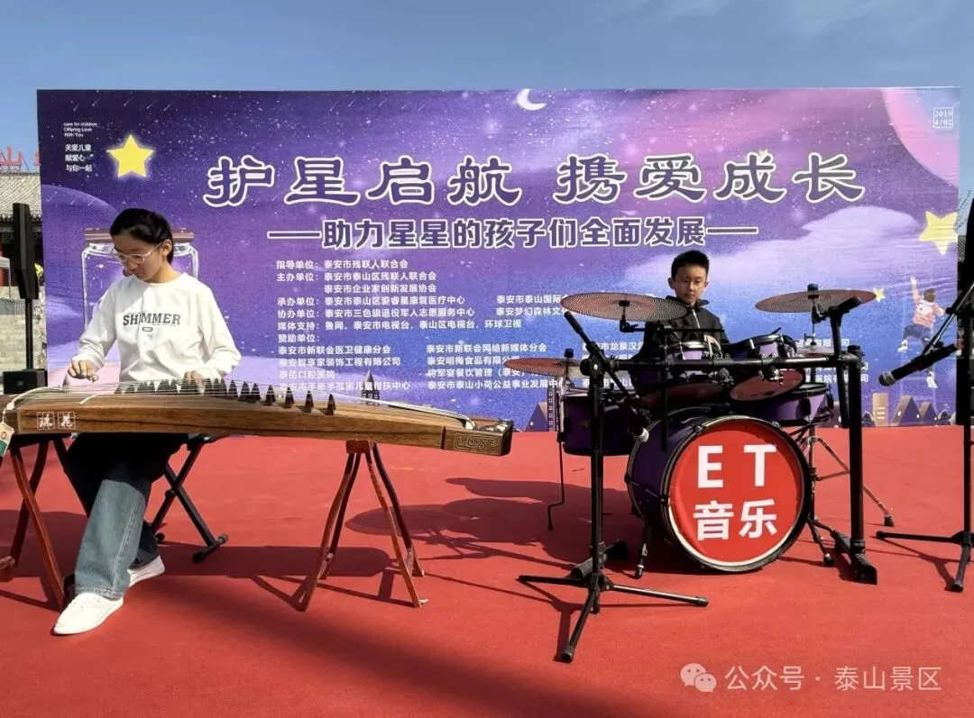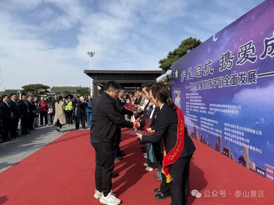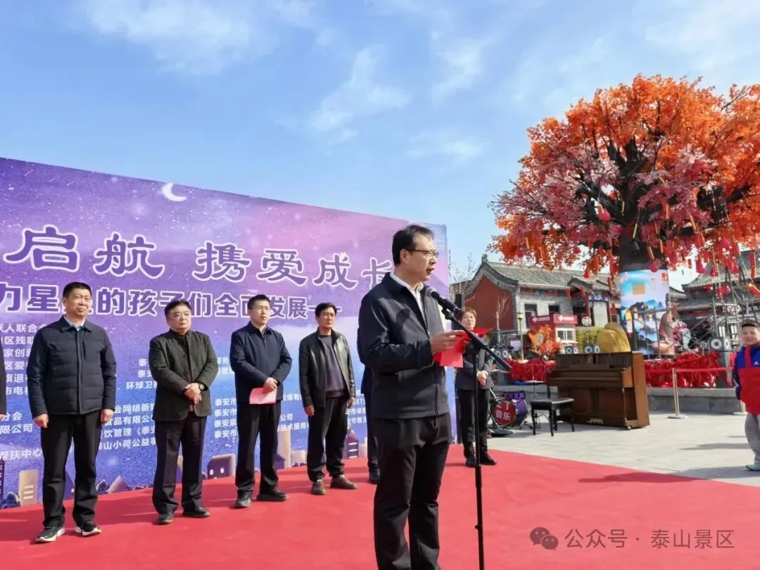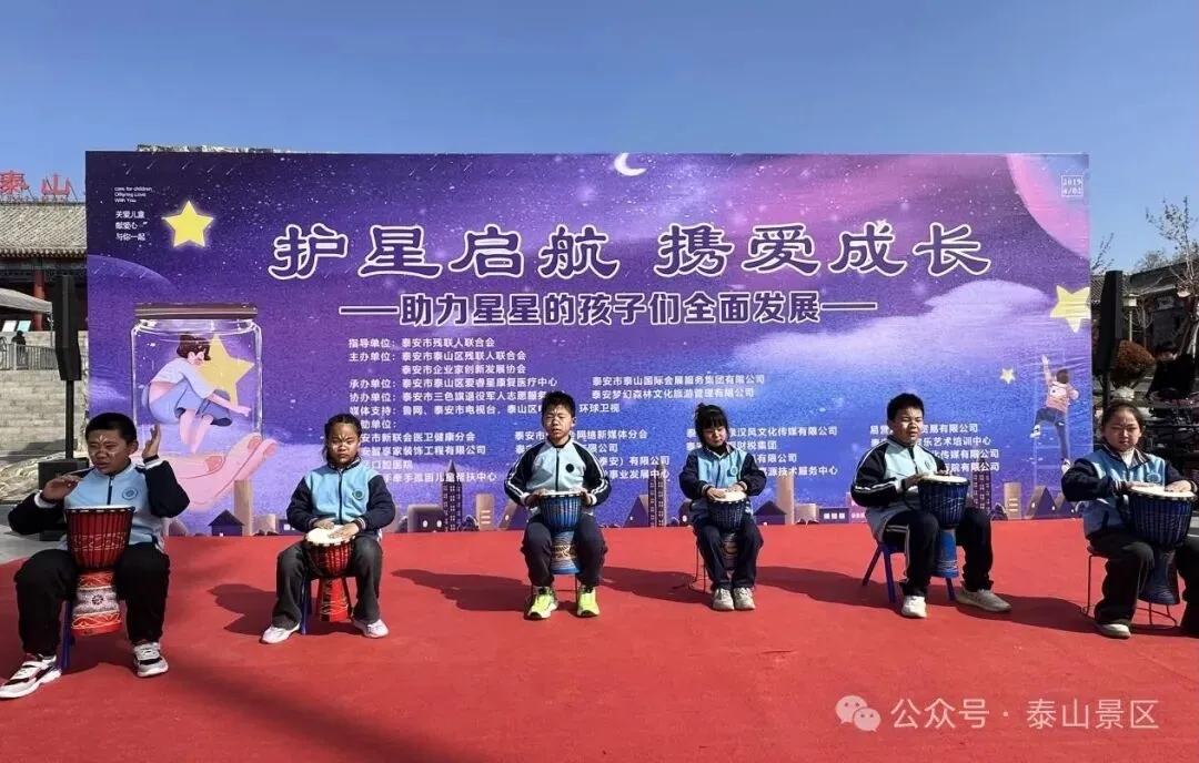 3月29日,泰山红门广场春意盎然,爱意涌动。由泰山文旅集团会展集团承办的泰山区第十八届世界孤独症日公益宣传活动--“护星启航 携爱成长”温情启幕。主要负责人代表集团发表致辞。他表示,作为活动的承办方,集团充分发挥会展策划与资源整合优势,从场地布置到活动执行全程护航,并联合子公司泰山梦幻森林景区为孩子们设计安全有趣的游览路线,让自然与人文成为他们成长的‘第二课堂’。同时会展集团将持续关注特殊群体需求,推动公益事业与文旅产业深度融合,为孤独症儿童创造更多融入社会的机会。活动现场,泰安市及泰山区残联领导为爱心企业颁发荣誉证书,表彰其对公益事业的长期支持。在“派发礼物”环节,领导与爱心人士为来自爱睿星康复医疗中心的孩子们送上精心准备的礼物,并与他们共同切蛋糕,现场欢声笑语,暖意融融。随后,一场由孤独症儿童与特教教师联袂献上的艺术盛宴将活动推向高潮。爱睿星教师团队的舞蹈《青春快出发》展现了特教工作者的热忱;古筝与架子鼓合奏《刀剑如梦》碰撞出传统与现代的艺术火花;非洲鼓《红山果》、钢琴独奏《如愿》等节目,让观众看到孩子们独特的才华与潜力。压轴节目《花开忘忧》的童声合唱,更让全场感受到爱与希望的力量。下一步,会展集团将以此次活动为起点,持续深化"公益+文旅"融合发展模式。借助公益活动搭建融合桥梁,打破认知壁垒,让孤独症儿童融入社会,感受社会温暖。