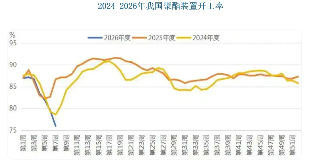 需求端支撑不足的同时,乙二醇社会库存进入季节性累积通道,进一步加剧了行业产能过剩压力。受春节期间物流停滞、下游聚酯企业集中减停产的双重影响,乙二醇出库受阻、入库增加,库存持续攀升。截至2026年2月12日,我国乙二醇社会库存总量已升至201.86万吨,较1月初的182.11万吨增加10.84%,累库幅度超出市场预期。