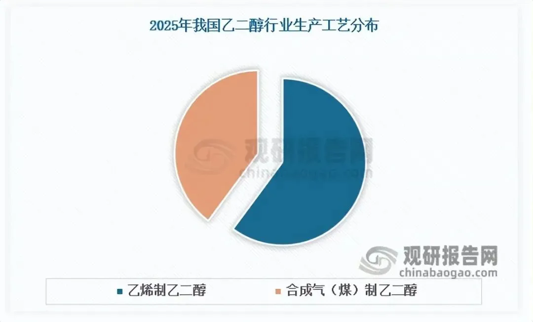在行业利润持续压缩、成本竞争力不断下滑的背景下,乙二醇行业工艺路线竞争已明确聚焦“低成本”核心,成本控制能力成为企业生存发展的关键。目前我国乙二醇行业生产工艺主要分为乙烯制与合成气制两种,不同工艺路线的成本结构及竞争力差异显著。数据显示,2025年我国乙二醇行业生产中,合成气(煤)制乙二醇产能占比39.85%,乙烯制乙二醇产能占比60.15%,乙烯制工艺仍占据主导地位。