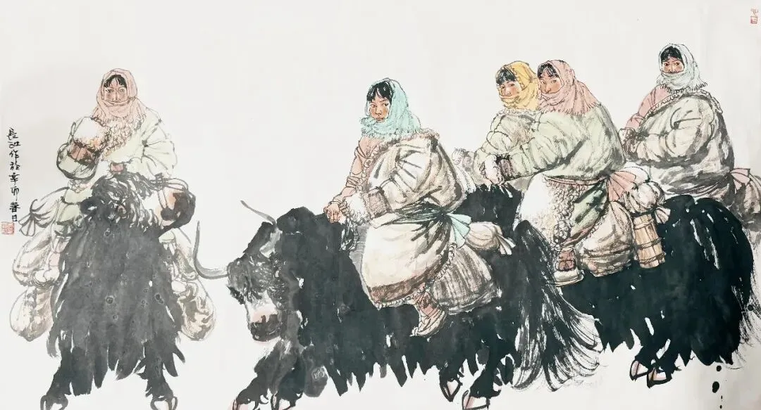吴长江 《骑牦牛的藏族女孩》 82x153cm 中国画 2021