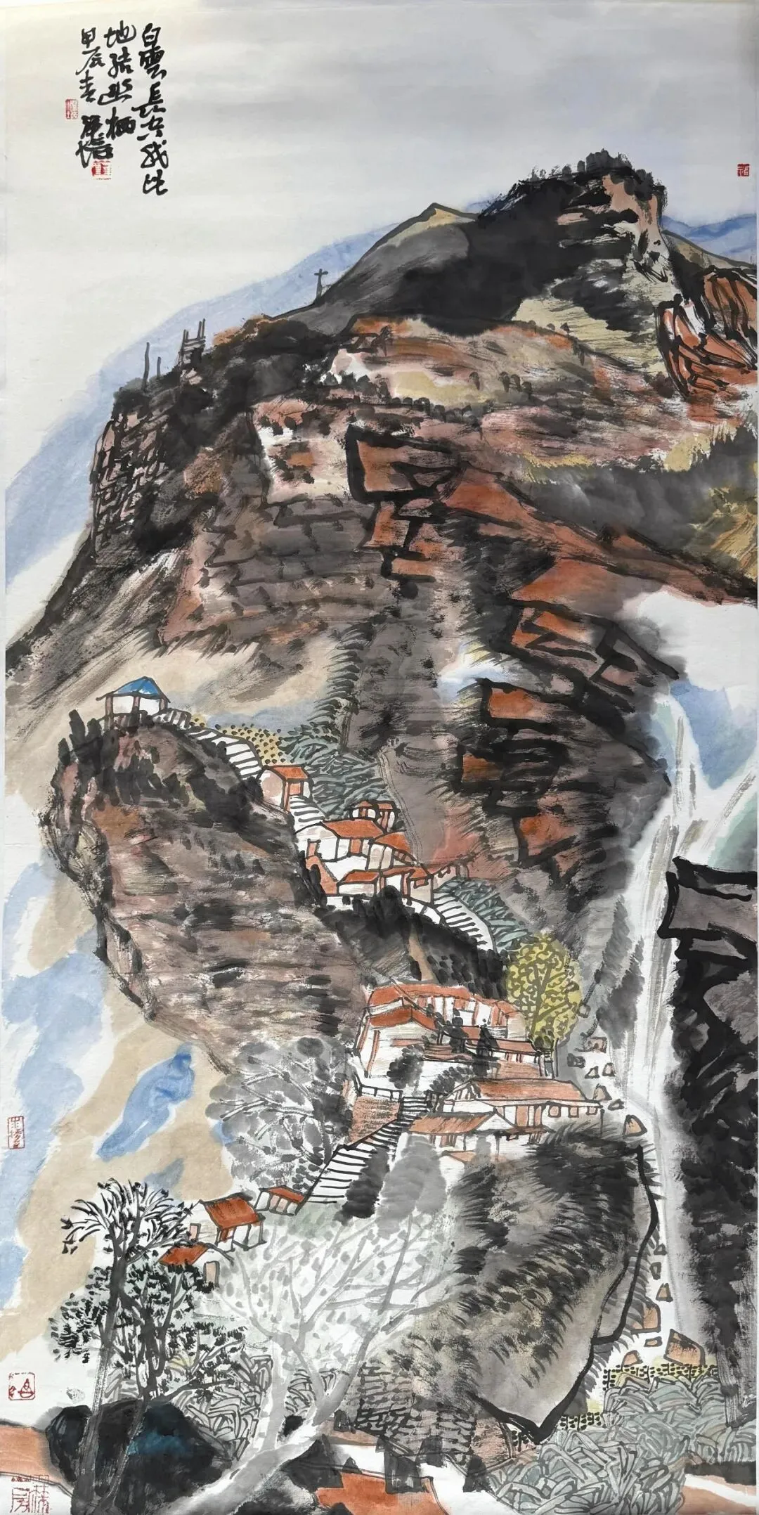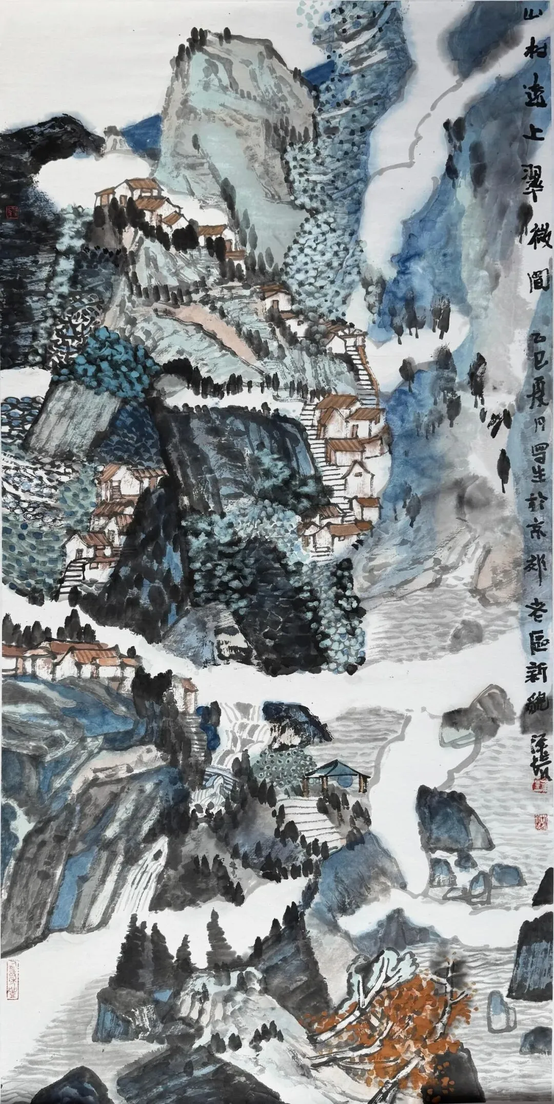 崔泽培《山村远上翠微图》136x68cm 中国画 2025