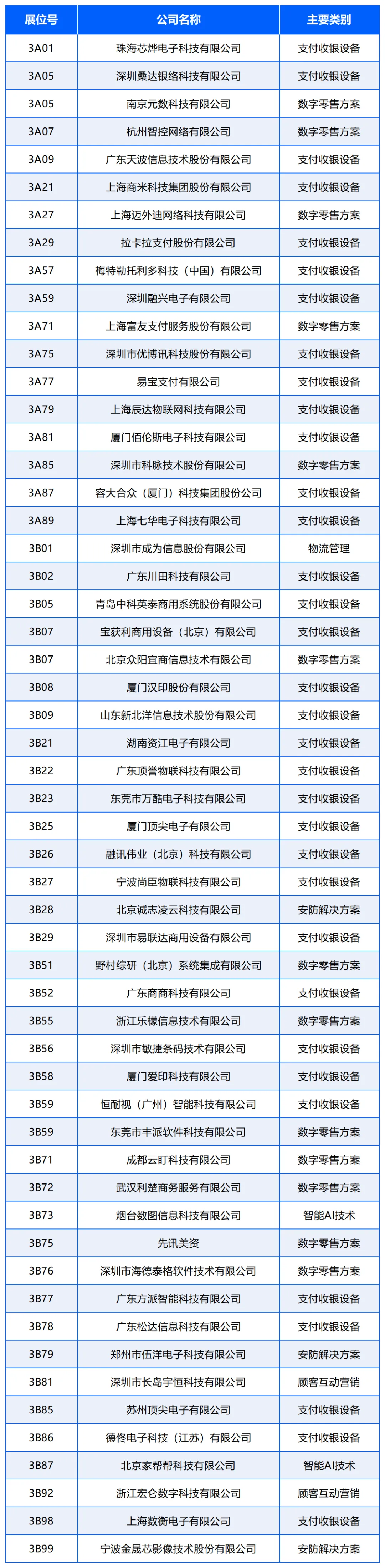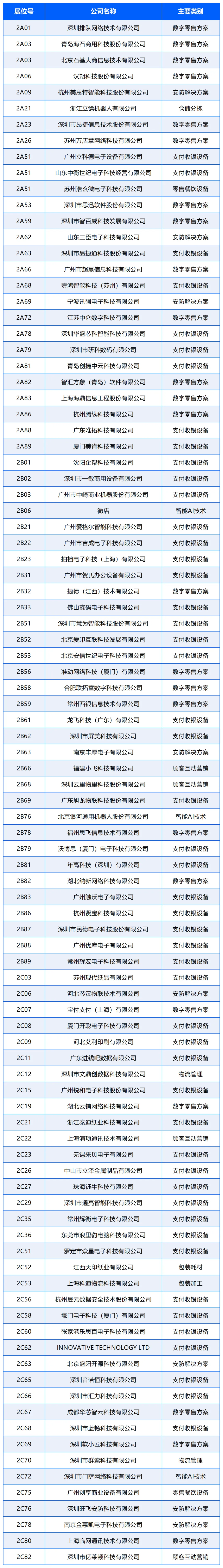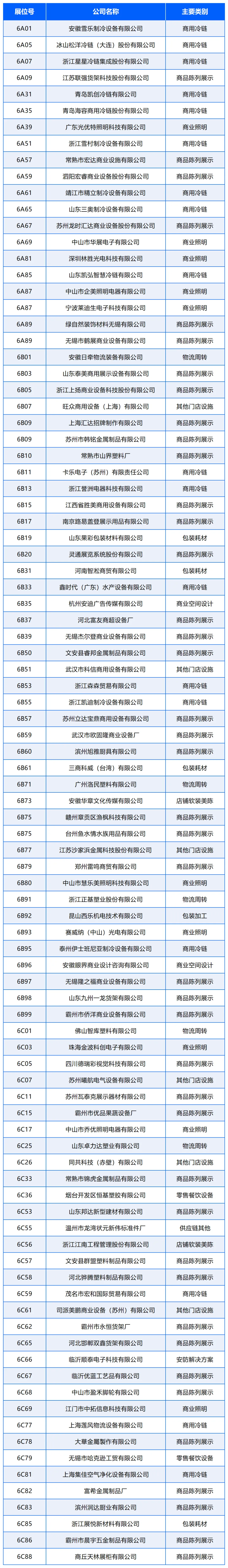 1、以上企业名单以展位号排序,排名不分先后;