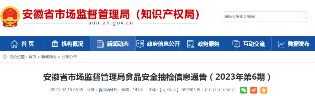 近期,安徽省市场监督管理局组织抽检方便食品、蜂产品、食用农产品、粮食加工品、肉制品、乳制品等6类食品322批次样品。根据食品安全国家标准检验和判定,其中抽样检验项目合格样品317批次、不合格样品5批次。