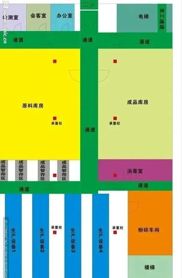 · 原料库与成品库应尽可能靠近厂房外墙,以便利物料的接收与发运。