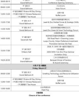 由上海有色网(SMM)主办、盛屯矿业集团股份有限公司独家冠名的2026 SMM(第二十一届)铅锌大会暨产业博览会,将于2026年3月25-27日,在四川·成都雅居乐豪生大酒店举办。
