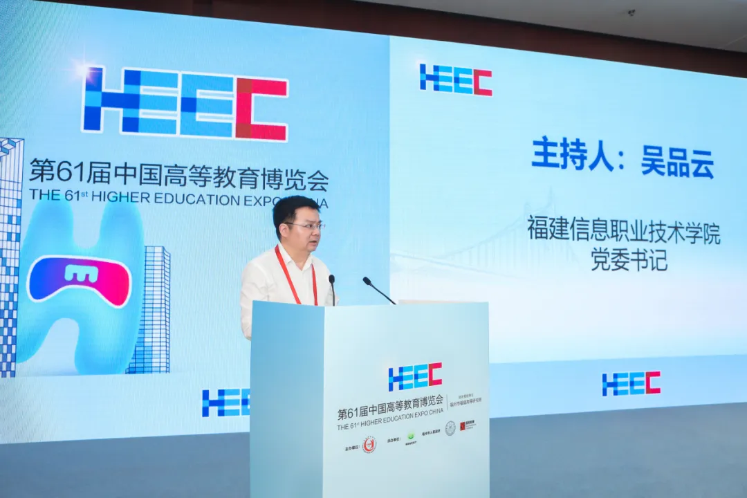 4月15日,由中国高等教育学会主办,中国高等教育学会职业技术教育分会、福州软件职业技术学院、福建信息职业技术学院、中国高等教育培训中心、国药励展承办的第61届中国高等教育博览会数字化赋能职业教育高质量发展学术活动在福州海峡国际会展中心举办。学术活动邀请中国高等教育学会副会长葛道凯,教育部职业教育与成人教育司副司长李英利,教育部职业教育发展中心副主任曾天山,江苏省高等教育学会秘书长、南京信息工程大学原副校长邓志良,常州机电职业技术学院校长许朝山,中国高等教育学会职业教育分会副理事长、重庆电子工程职业学院校长聂强,福建信息职业技术学院党委书记吴品云,福州软件职业技术学院党委书记林莺,福建信息职业技术学院副校长李宏达,威海职业学院副校长车信超,河北软件职业技术学院副校长乔哲,福州软件职业技术学院副校长李晋,湖南强智科技发展有限公司总经理何勇波,新道科技股份有限公司副总裁贾大明,中国高等教育学会职业技术教育分会监事长、湖州学院党委书记金波等各高校领导教师代表500余人参加会议。会议分别由中国高等教育学会职业技术数育分会理事长周建松、福建信息职业技术学院党委书记吴品云、福州软件职业技术学院党委书记林莺主持。