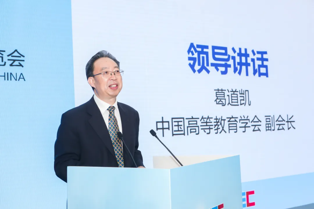 会上,葛道凯代表中国高等教育协会向学术活动的顺利举办表示热烈的祝贺,向出席今天学术活动的各位领导、专家、嘉宾和同志们表示诚挚的欢迎。他就数字化赋能职业教育高质量发展交流三点认识:第一,数字化赋能职业教育,是实现高质量发展的必然时期。第二,数字化赋能职业教育,是职业教育自身变革的内在要求。第三,数字化赋能职业教育是学校和企业不可回避的共同责任,也是共同命题。要携手来扎实推进职业教育的数字化转型进程,推进转型成果更快更好的汇集更多的学校,广大的学生和相关企业,为中国式现代化提供更为有利的职业教育支撑。