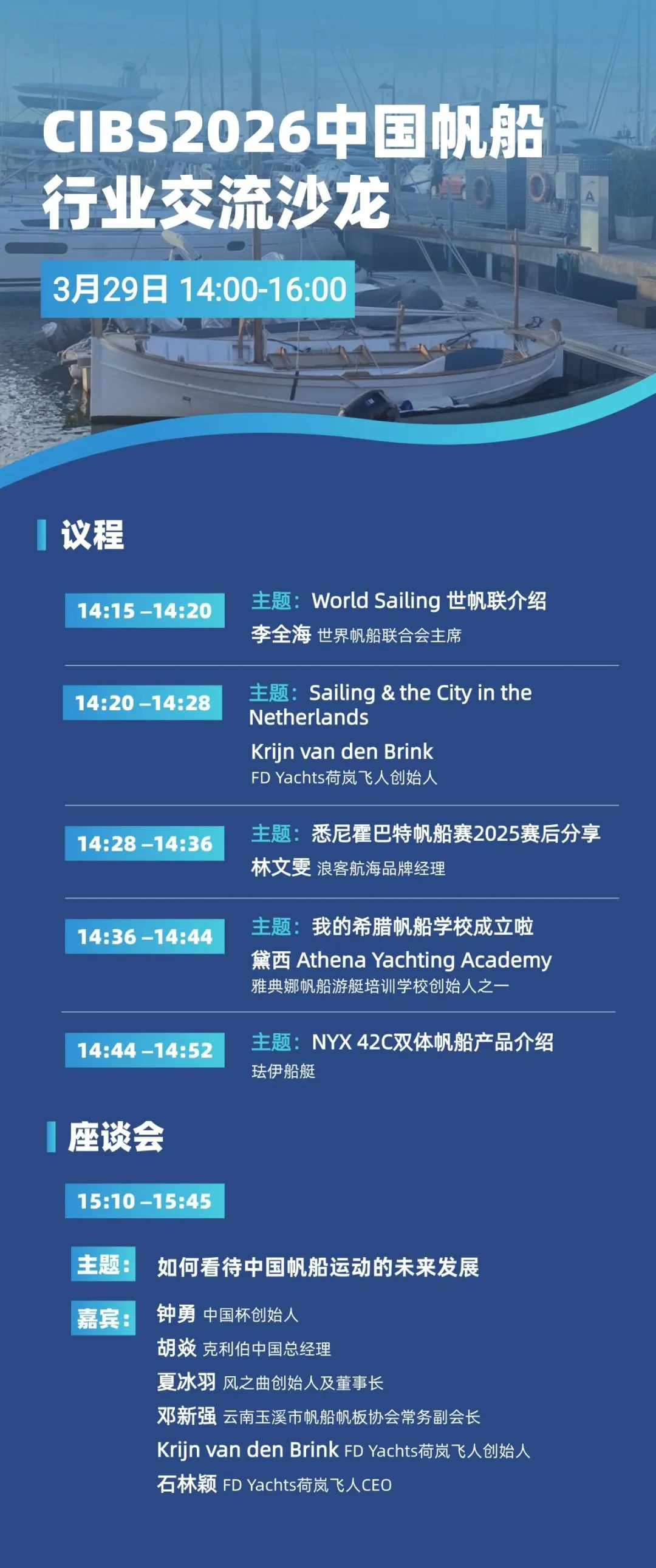 3月29日14:00-16:00,CIBS2026中国帆船行业交流沙龙将于上海世博展览馆5号会议厅盛大召开。该场沙龙活动将行业内最具影响力的参与者齐聚一堂,以演讲及深度对话的形式聚焦帆船赛事、俱乐部课程、行业新品及未来发展趋势。