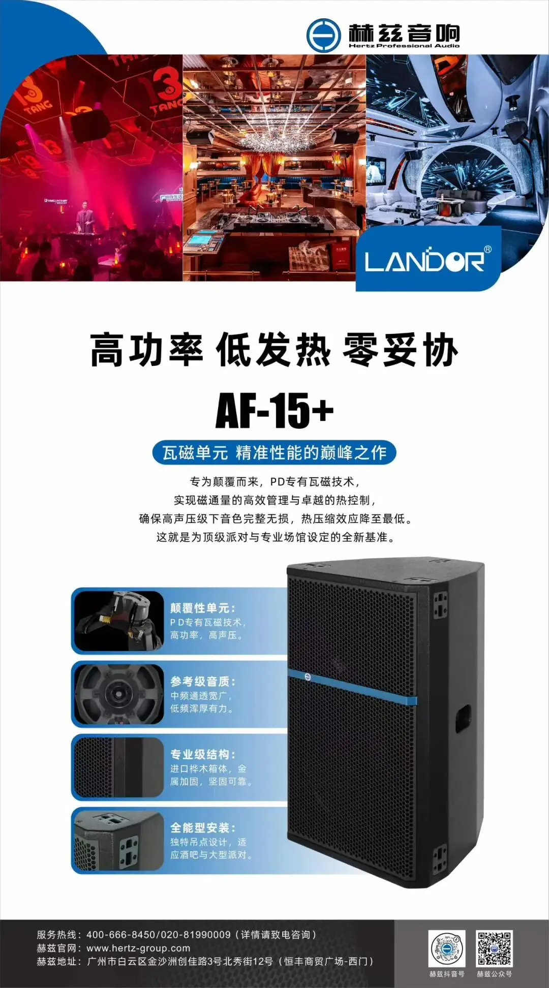 广州市赫兹音响有限公司,自1998年成立以来,始终专注于高端娱乐场馆专业扩声系统解决方案。公司集自主研发、品牌运营、系统设计、技术支持和工程服务于一体,旗下拥有自主研发品牌「蓝点LANDOR」,同时作为法国NEXO中港澳娱乐事业总代理,致力于将全球顶尖声学技术与本土化创新相结合,输出精准适配的音频解决方案。