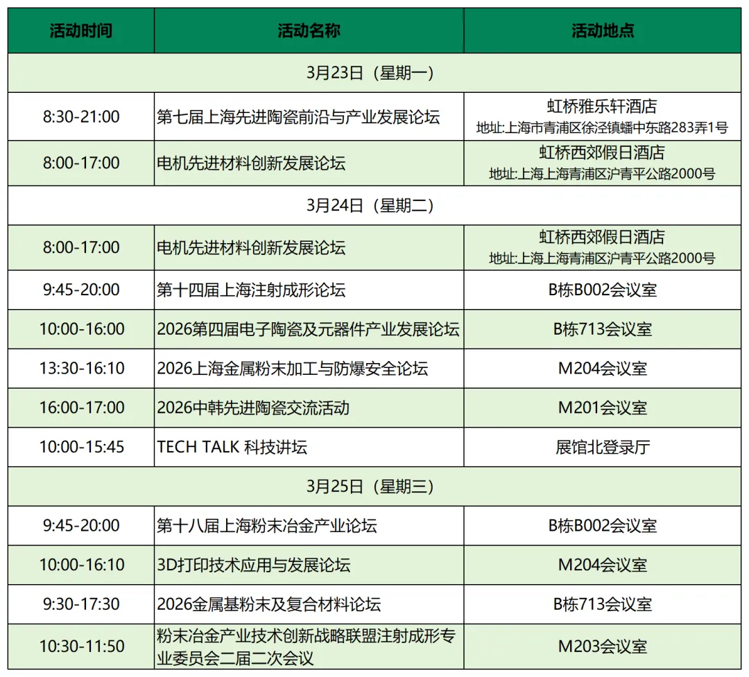 上海国际增材制造展、上海粉体加工处理展、上海国际磁性材料展、上海粉末冶金展&硬质合金展