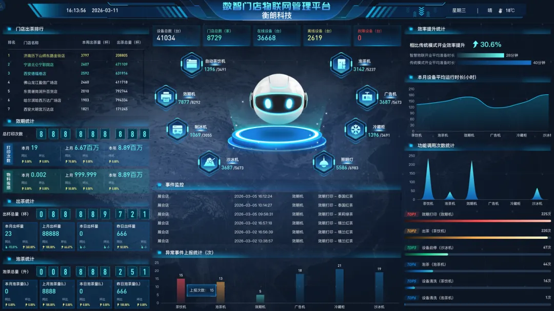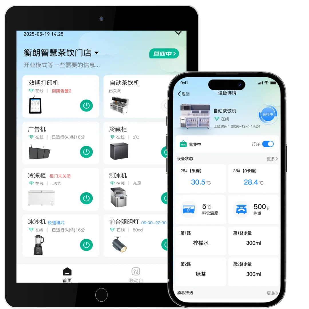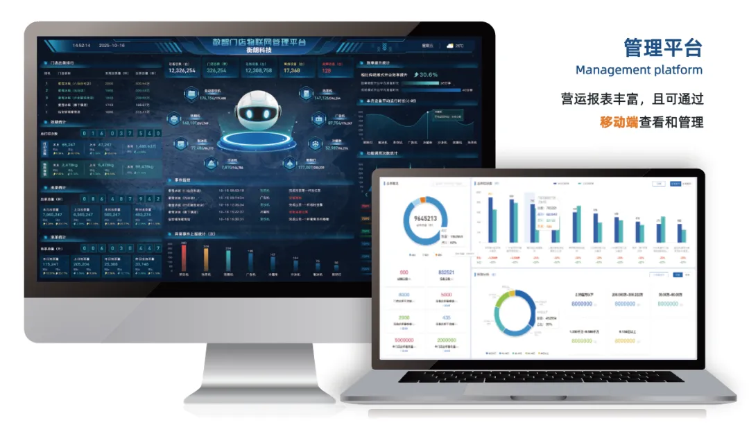 数智物联 IOT 平台 :打造软硬件协同全链路门店生态,打破数据孤岛,实现多品牌 / 多型号设备的无缝互通与统一管控;支持远程控制、实时状态监测、智能预警,可基于场景化逻辑实现设备自主协同与参数自适应调节,以数据驱动赋能门店高效运营。