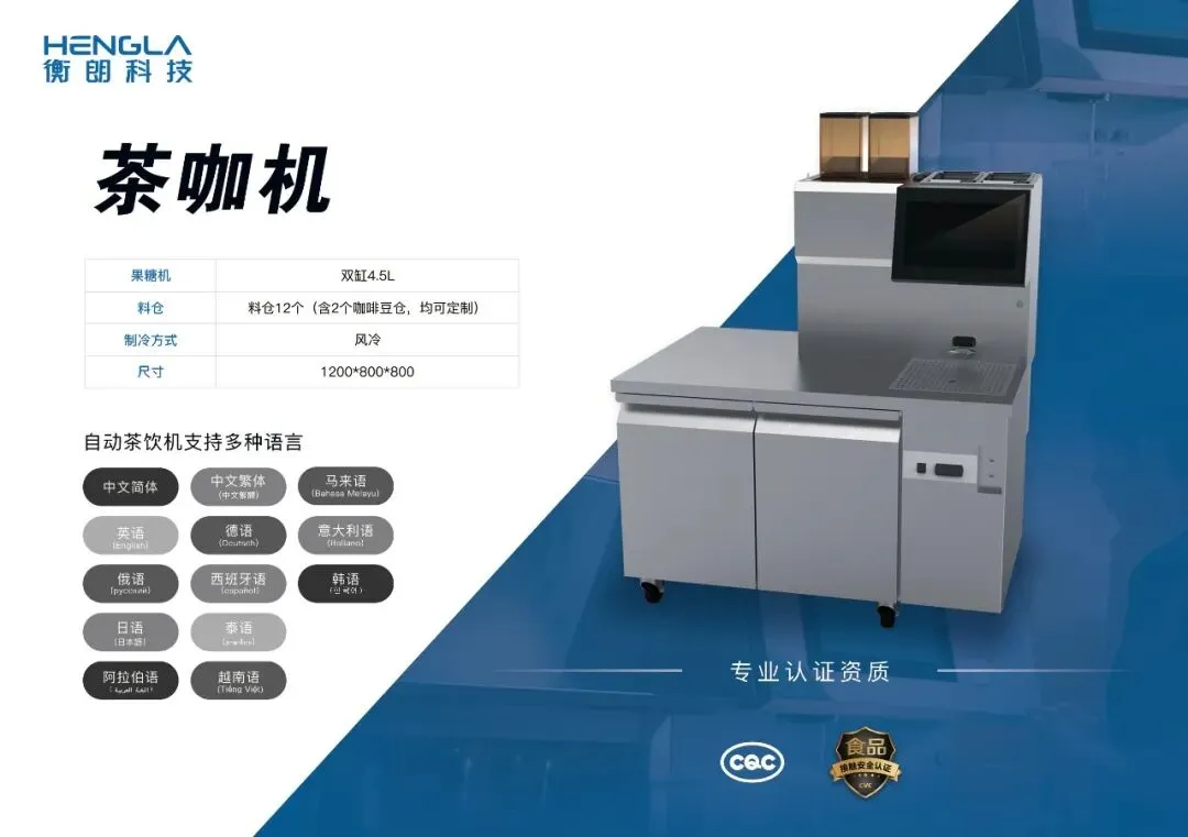 茶咖机:兼具茶饮、咖啡双品类制饮能力,一机多用提升空间利用率;延续高精度出料与标准化制作优势,支持配方自定义与云平台远程管控;操作简单易上手,降低门店设备投入与人工培训成本。