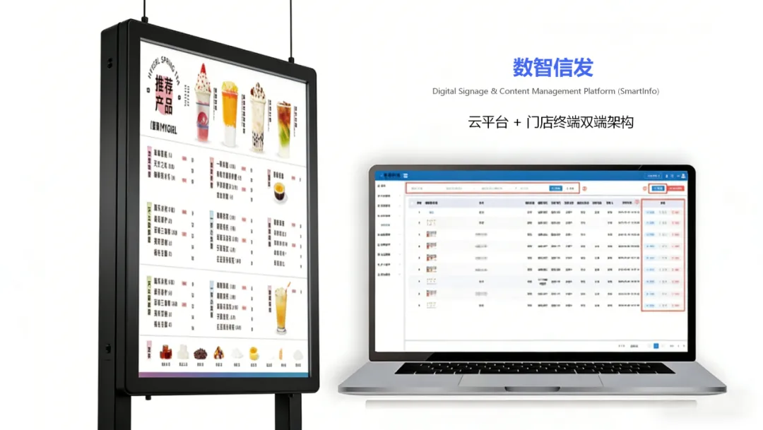数智信发:实现门店广告、营销信息、操作指引的智能发布与跨端同步;可根据门店场景、节日灵活调整内容,与其他数智系统协同联动;打造沉浸式消费场景,提升品牌宣传与营销转化效率。