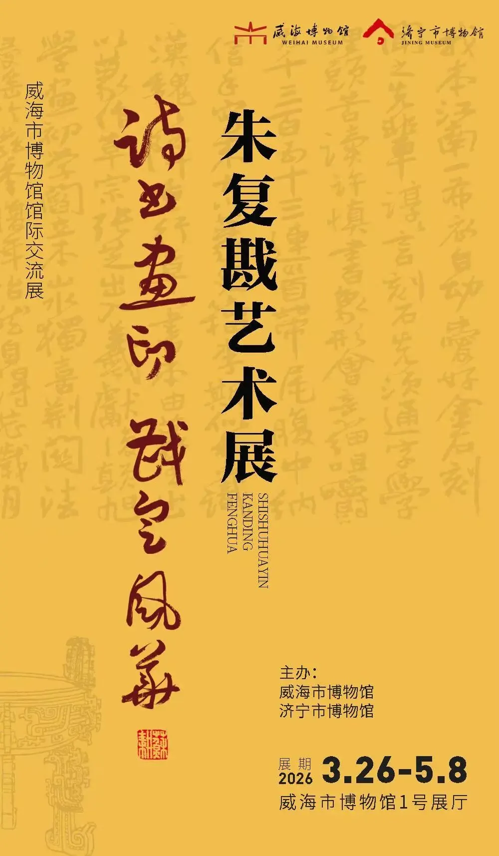 为深化馆际协作与文化传承创新,威海市博物馆与济宁市博物馆联合主办“诗书画印 戡定风华——朱复戡艺术展”,将于3月26日在威海市博物馆1号展厅开展。