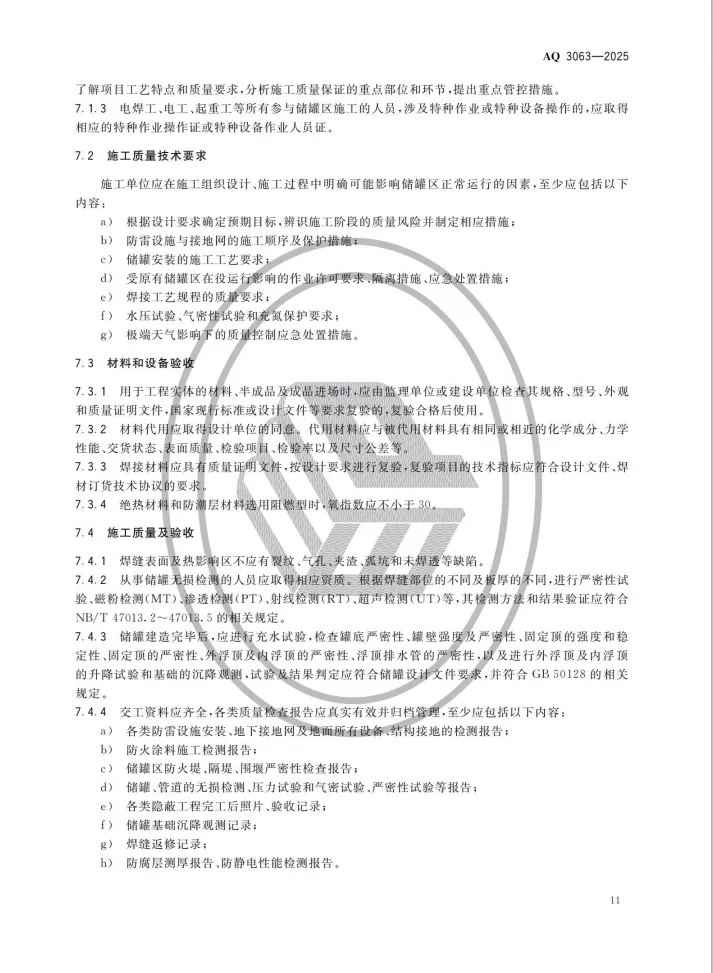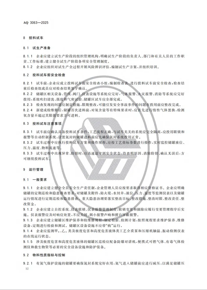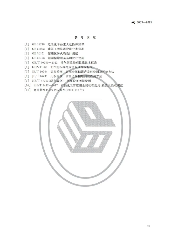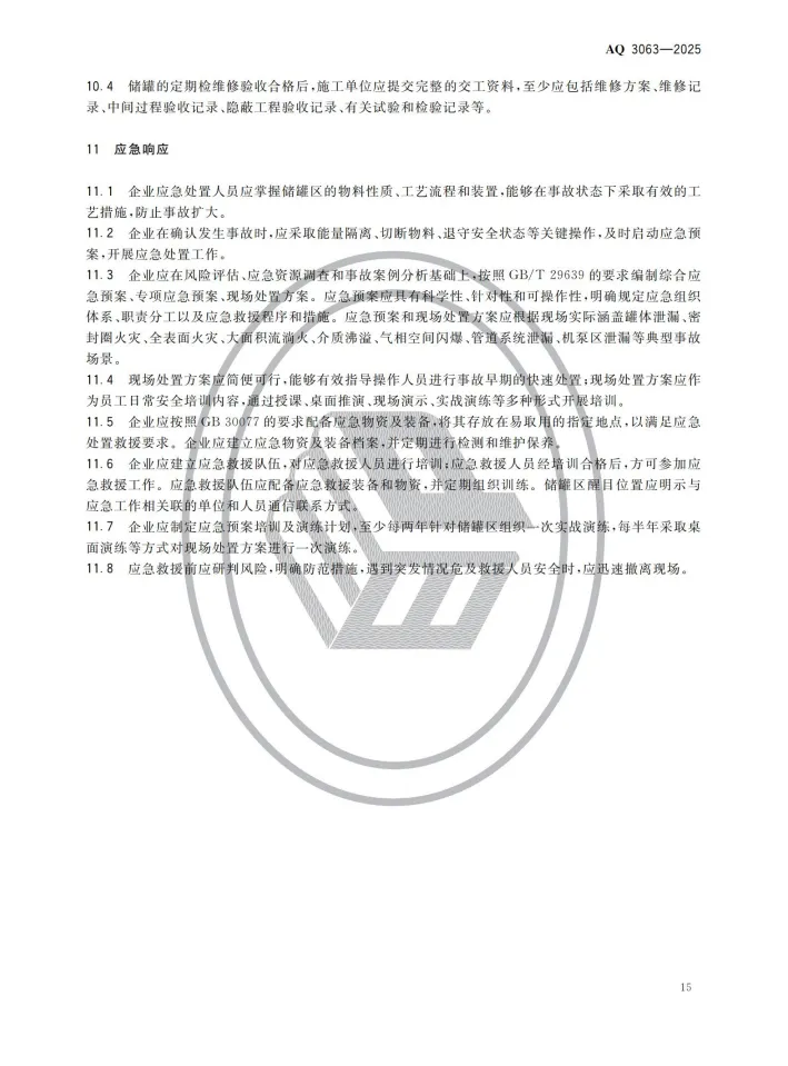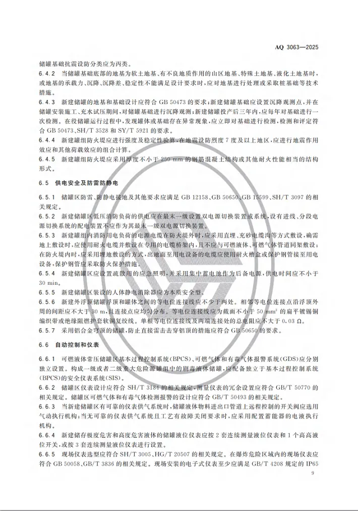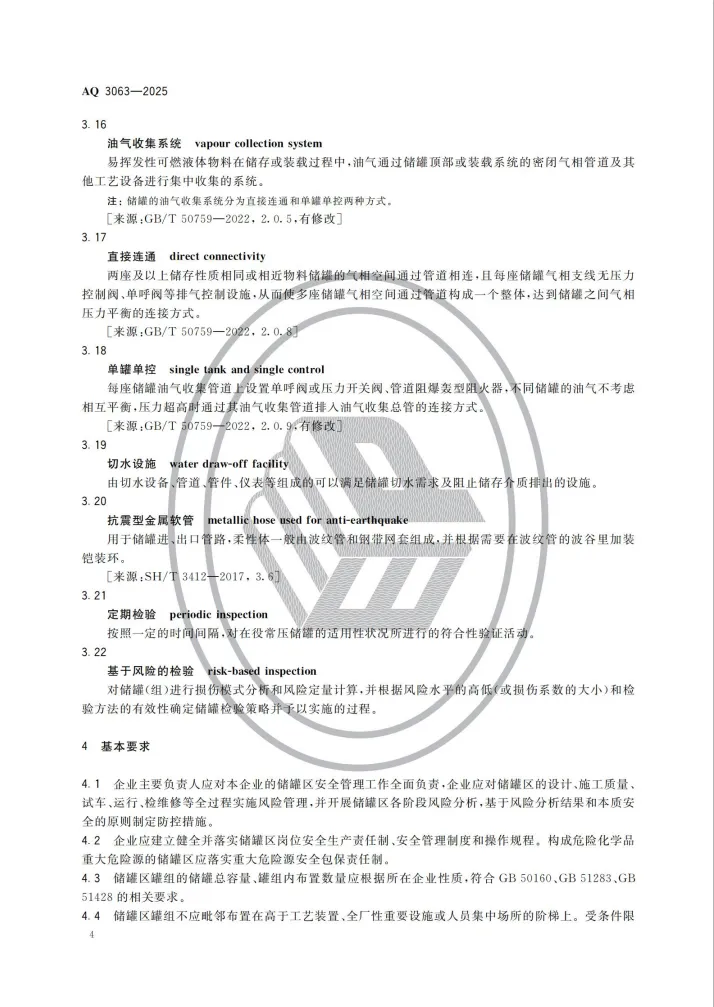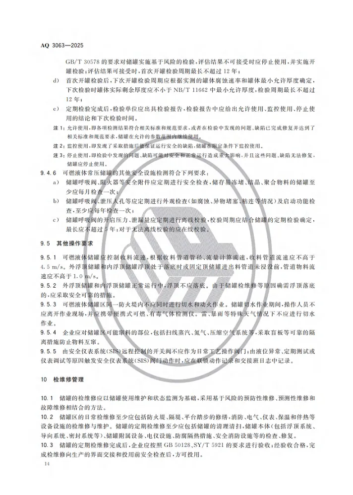 强制性行业标准 AQ 3063-2025《化工企业可燃液体常压储罐区安全管理规范》将于 2026 年 4 月 30 日 正式实施。