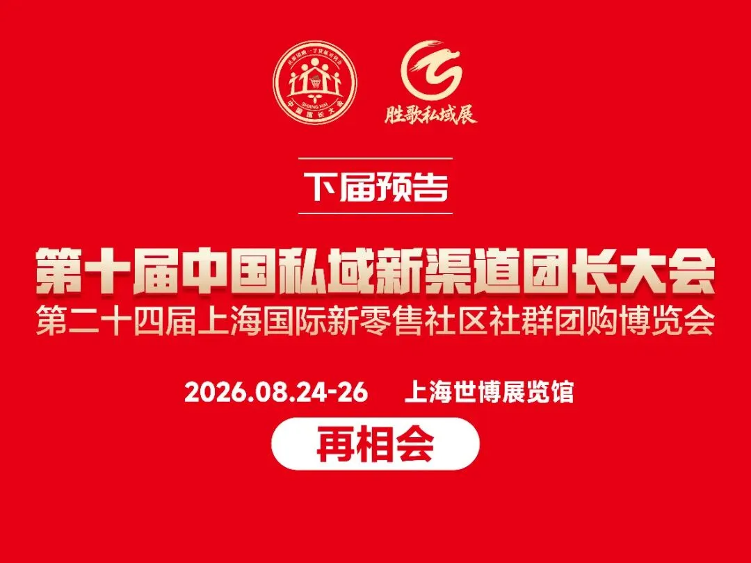 随着本届盛会的圆满闭幕,组委会正式宣布:第十届中国私域新渠道团长大会暨第二十四届上海国际新零售社区社群团购博览会将于2026年8月24日至26日在上海世博展览馆盛大举行。站在新的起点,主办方将总结经验、优化服务,持续打造更高水平的私域领域交流平台。